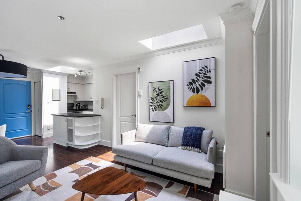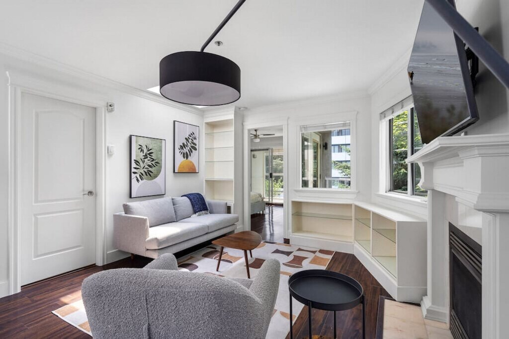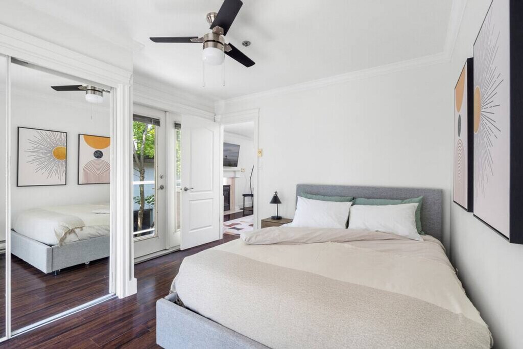 Nestled in the peaceful tree-lined streets of Vancouver's Fairview neighborhood, this newly furnished 1-bedroom condo offers a comfortable and refined stay within the heart of Vancouver while providing excellent access to the city and its best attractions. Guests will enjoy this upgraded suite with new appliances, comfortable furnishings, a queen bed, a full bathroom, a patio, a solarium, an in-suite washer and dryer, and complimentary parking behind the building. The space within this condo is denoted by brand-new designer furnishing throughout, coupled with new appliances and amenities to ensure a quality stay in a comfortable setting. The spacious layout provides a full-size living room equipped with a 50-inch Samsung Smart TV, and a full kitchen boasting all-new utensils and appliances for top-quality home-cooked meals. Guests will have access to a dedicated parking spot behind the building. Welcome to Fairview, one of Vancouver's most vibrant and sought-after neighborhoods. Nestled in the heart of the city, Fairview offers a unique blend of urban convenience and natural beauty. With its close proximity to False Creek and Granville Island, residents can enjoy waterfront walks, bike rides, and the vibrant atmosphere of the famous Granville Island Public Market. The nearby seawall provides a scenic route for jogging, cycling, or simply taking in breathtaking views of the city skyline and mountains. Fairview is also home to world-class medical facilities, including Vancouver General Hospital and BC Children's Hospital, adding a sense of security and ensuring access to top-notch healthcare. The neighborhood is well-connected with various transportation options, including TransLink buses, the Canada Line SkyTrain, dedicated cycling lanes, and walkable amenities. No parties, events, or large gatherings are allowed. No smoking in or on the property. [SI]