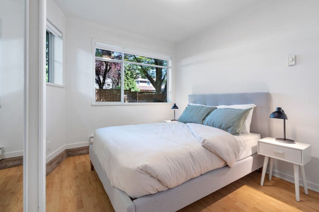Nestled in the peaceful tree-lined streets of Vancouver's Fairview neighborhood, this newly furnished 2-bedroom condo offers a comfortable and refined stay within the heart of Vancouver while providing excellent access to the city and its best attractions. Guests will enjoy this upgraded suite with new appliances, comfortable furnishings, two queen beds, two full bathrooms, a large outdoor terrace, an office, an in-suite washer and dryer, and complimentary parking behind the building. The space within this condo is denoted by brand-new designer furnishings throughout, coupled with new appliances and amenities to ensure a quality stay in a comfortable setting. The spacious layout provides a full-size living room equipped with a 50-inch Samsung Smart TV and a full kitchen boasting all-new utensils and appliances for top-quality home-cooked meals. Guests will also have a large outdoor terrace dedicated to this unit to enjoy the fresh air. Additional amenities include an in-suite washer and dryer, desk space, a walk-in closet, and an ensuite bathroom in the master bedroom. Guests will have access to a dedicated parking spot. Welcome to Fairview, one of Vancouver's most vibrant and sought-after neighborhoods. Nestled in the heart of the city, Fairview offers a unique blend of urban convenience and natural beauty. With its tree-lined streets, stunning views, and proximity to downtown, it's no wonder this neighborhood is a favorite among locals and visitors alike. With close proximity to False Creek and Granville Island, residents can enjoy waterfront walks, bike rides, and the vibrant atmosphere of the famous Granville Island Public Market. The nearby seawall provides a scenic route for jogging, cycling, or simply taking in breathtaking views of the city skyline and mountains. Fairview is also home to world-class medical facilities, including Vancouver General Hospital and BC Children's Hospital, ensuring access to top-notch healthcare. The neighborhood offers various transportation options, including TransLink buses, the Canada Line SkyTrain, dedicated cycling lanes, and walkable amenities, making it easy to navigate Fairview and its surrounding areas. No parties, events, or large gatherings are allowed. No smoking in or on the property. [SI]