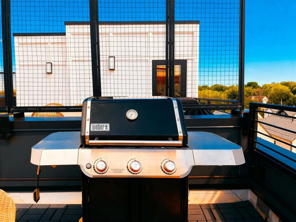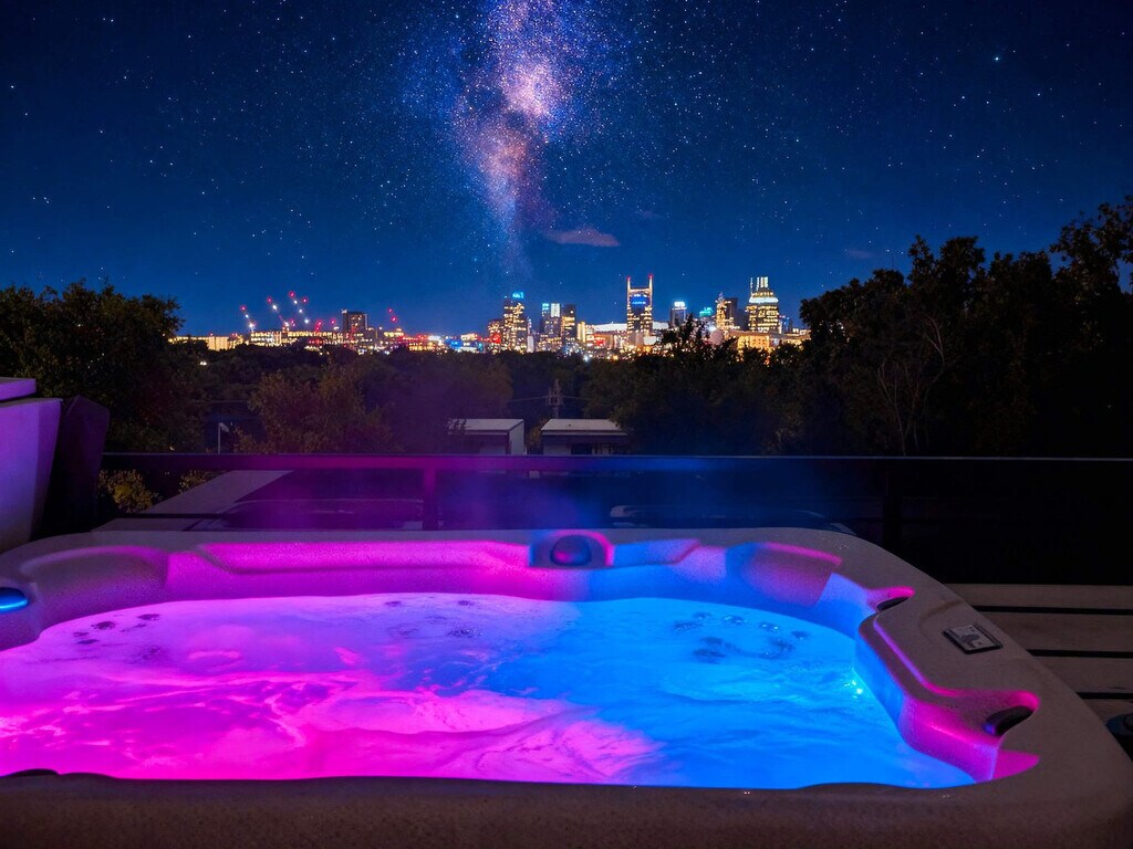 Feel at home in this stylish 4-bedroom retreat in Nashville, offering skyline views and a private rooftop hot tub just 3 miles from Broadway. This sleek apartment offers a chef’s kitchen with seating for 14, memory foam beds, and curated art throughout. Amenities include a rooftop deck with a hot tub and skyline views, a dining area with seating for 14 guests, a stylish living room with smart TVs and Wi-Fi access, a gourmet chef’s kitchen with quartz countertops, memory foam mattresses and custom darkening drapes, built-in make-up and getting ready areas, a washer and dryer, an outdoor rooftop dining and lounge space, curated custom art and bold design features, a coffee station with drip and pod options, USB charging stations next to every bed, central climate control (AC and heating), secure smart lock keyless entry, and premium linens and towels. Private garage parking with 2 spaces is available (note: vehicles over 19’ will not fit). Free street parking is also available. Located near East Nashville and Germantown, this dynamic area is a stone's throw away from downtown Nashville. Explore nearby hotspots like trendy East Nashville or the historic Germantown district, where you can discover local boutiques, art galleries, and charming cafes. Indulge in Nashville's renowned culinary scene by dining at top-rated restaurants such as The Southern Steak & Oyster or Husk Nashville, both located just minutes away. Smoking is not allowed inside the property or near open doors or windows, and a minimum $500 fine applies for violations. Quiet hours are from 10 pm to 8 am on weekdays and 12 am to 8 am on weekends. Registration Number: [SI]