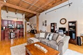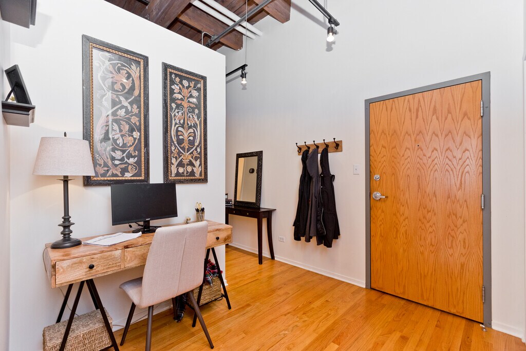 This HUGE one bedroom, penthouse level, brick exposed timber loft is not your typical one bedroom and rarely becomes available in The Cosmopolitan Lofts! Situated in a prime location in a one-of-a-kind boutique building in the heart of the South Loop. This bright and sunny unit includes a medium sized deck off of the living space plus two extra areas for a desk and a dining table. The unit's foyer houses a second bathroom, laundry room and more storage than you'd ever need! Continue into the open concept living room and kitchen that is complete with a gas-starting fireplace. The spacious master suite has room for a king-size bed and includes a generous bathroom with double bowl sinks, a large tub and walk-in closet. Enjoy 15' ceilings, rustic wood beams and exposed brick for a true urban industrial feel. A+ walkable location but a heated attached garage parking spot is included! On top of all of this there is a storage room located in the basement included in the monthly rent as well as water and cable TV. Living here, you'd be conveniently located next to Trader's Joe, walking distance to trains and public transportation, Target, movie theater, Museum Campus, the lakefront and exciting Soldier Field to attend sporting events and concerts with ease. The secure and professionally managed building has an open lobby, and updated fitness room. Units in this building rarely come available and do not stay on the market long!