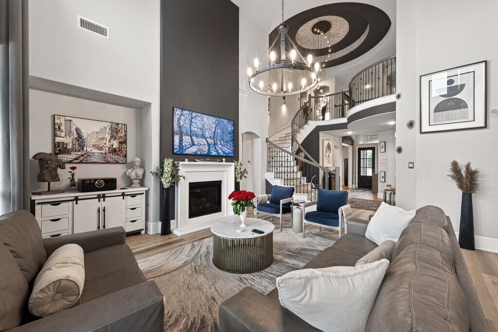Discover upscale comfort and feel at home in this 4-bedroom, 3.5-bath home in Humble, Texas, just minutes from Houston and IAH Airport. This expansive home sleeps up to 11 guests and features an open-concept living, dining, and kitchen area. The gourmet kitchen is equipped with Café stainless steel appliances and a gas range. Relax in the living room with a large Smart TV or enjoy the dedicated movie screening room with an oversized sectional. The home also includes a private pool, hot tub, sauna, putting green, and a full gym with Peloton bikes and equipment. There are 7 Smart TVs throughout the home, high-speed Wi-Fi, central air, a washer/dryer, and smart lock entry. Early check-in and late checkout are available upon request, subject to availability and an additional fee. Nestled within the beautiful Balmoral master-planned community, this home offers a perfect balance of suburban tranquility and urban convenience. You'll be less than 20 minutes from George Bush Intercontinental Airport, and downtown Houston, the Texas Medical Center, and popular attractions are within a 25–35 minute drive. Nearby, you'll find Deerbrook Mall, grocery stores, restaurants, and local parks. Smoking, vaping, or open flames are prohibited inside the home, and a $250 fee applies for violations. Parties, events, or unregistered guests are not allowed. Pets are not allowed; however, service animals are permitted with verified documentation provided at least 72 hours prior to arrival. Quiet hours are from 10:00 PM to 7:00 AM. Please respect neighbors and keep noise to a minimum. Guests must follow all Balmoral community guidelines while using shared amenities. Lagoon and park lake access is for registered guests only. Wristbands or passes must be used if provided. Glass containers are not permitted in community areas. Proper swimwear is required at the lagoon, pool, and hot tub. Children must be supervised in all community areas, including the lagoon, playgrounds, and walking trails. Please respect community quiet hours and parking rules. Unauthorized vehicles may be towed. All guests must conduct themselves in a respectful manner toward neighbors and staff. [SI]