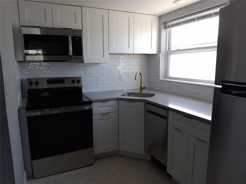 Welcome to your fully remodeled Isle of Capri retreat! This bright and elegant 1 bedroom, 1 bath apartment offers sweeping intracoastal waterway views & serene waterfront living. Step inside to a stunning, completely renovated interior with gleaming terrazzo floors & stainless-steel appliances in the kitchen. The open-concept layout flows seamlessly to your private lanai a perfect spot to enjoy morning coffee or evening sunsets over the water. Exclusive to this property: direct access to the dock for convenient passenger pick-up & drop-off, ideal for boating or water-adventures. Located in the heart of Treasure Island's Isles, you're just moments from sand, sun, and coastal charm while enjoying unmatched waterfront tranquility. Move in and enjoy everything has been updated; just unpack and enjoy views, lifestyle, and luxury.