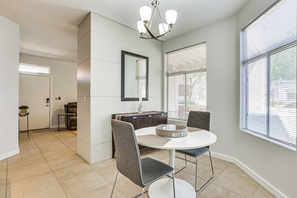 Feel at home in this 1st-floor, single-story condo in Scottsdale, offering step-free access. This 2-bedroom, 2-bath rental provides the perfect base for your extended getaway. This apartment features 2 Smart TVs, a fireplace, a 2-person dining table, central AC and heat, and a washer and dryer. The kitchen is equipped with a refrigerator, stove/oven, microwave, dishwasher, Keurig coffee maker (starter coffee provided), and cooking basics. Linens, towels, and complimentary toiletries are provided. Pets are welcome with a $100 fee, with a maximum of 2 pets. Designated covered parking is available for one vehicle, and guest parking is available on a first-come, first-served basis. You'll find the perfect base at this apartment that is close to restaurants. Sip your morning coffee on the patio, then hit the greens at Talking Stick Resort, browse the shops at Kierland Commons, or venture to Phoenix. In the evening, wind down at the condo with snacks and your favorite film on the big screen. Quiet hours are observed from 10:00 PM to 6:00 AM. No events, parties, or large gatherings are allowed. Includes a dedicated workspace in bedroom 1. [SI]