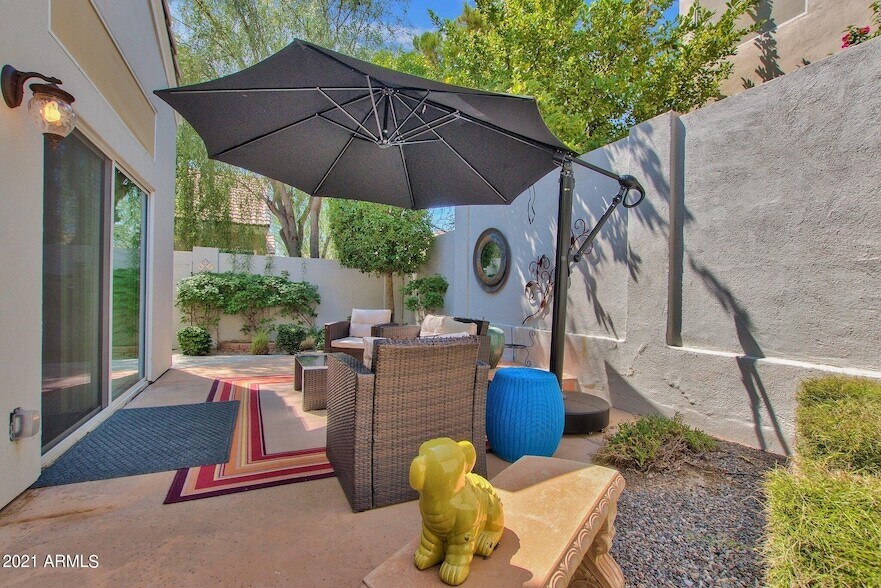 Magnificent furnished rental located in the secluded and gated subdivision of Miralago This charming home features 2 bedrooms, 2 bathrooms, a 2 car garage as well as a gated front courtyard, and a cozy enclosed backyard.. everything you need to make your Arizona stay comfortable. The kitchen boasts granite counters and stainless appliances! This community has a lake, a pool, and a spa! FANTASTIC Location close to hiking/biking trails, shopping, and dining! Come & Enjoy The Sun This Winter!!! High Season Rent Includes All Utilities, Cable TV & Internet.