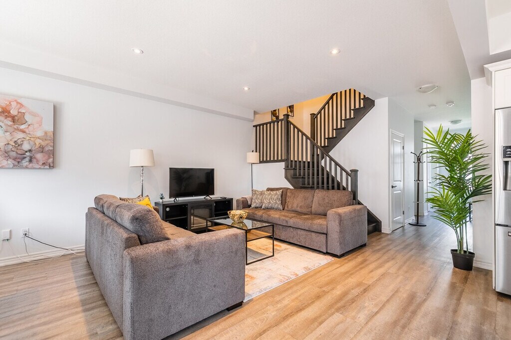 Feel at home in this unique and spacious 2500 sq ft townhouse in a quiet community. This property features 5 bedrooms, 3.5 bathrooms, and 2 living rooms. This comfortable suite perfectly fits 20 guests and has everything you need to feel right at home. The fully functional kitchen includes cookware, utensils, small appliances, and supplies such as tea, coffee, a kettle, coffeemaker, and toaster. There is also a washer and dryer with supplies, and 3.5 bathrooms with towels, shampoo, conditioner, body wash, a hair dryer, and other toiletries. Enjoy the private gym, hot tub, infrared sauna, and BBQ. Entertainment options include a 43’’ HD TV in each of the 2 living rooms and one additional TV in the common area. High-speed Wi-Fi is available. The dining table seats 12, and there are bar stools at the kitchen island. Pets are allowed with a fee of $20 per pet per night. Located steps from Lakeshore with a walking trail, this townhouse is close to all major stores and restaurants, including Walmart, Home Depot, A&W, Starbucks, and McDonald's, all within a 10-minute drive. It offers easy access to the QEW highway, Niagara Falls, Toronto, Hamilton, and Confederation Park. Enjoy the waterpark in the summer, sailing at the beachside, and the indoor Go Kart track all year round. Only 10 minutes away is the beautiful lift bridge where you can watch the bridge lifting to let the large boats and ships pass. It's also a 1-minute walk to the beautiful public beach. To check in, guests must be 25 or over, but for reservations of 7 nights or more, it is possible to check in from the age of 18. If there is garbage inside the hot tub or something is spilled into the tub, there is a $250 cleaning fee. [SI]
