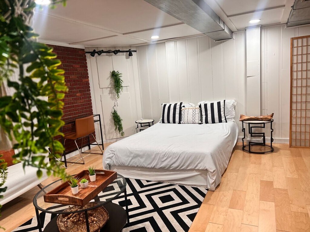 Newly renovated fully furnished basement studio with private entrance available. Welcome to Brookland affectionately called the oasis in the city Utilities and WiFi included. Walking distance to Brookland metro. Perfect for professionals relocating or on a work assignment that are looking for a comfortable space in DC without incurring hotel costs, AirBnb fees or signing a long -term lease. Minutes commute to Capital Hill, U street, 12th street, H street, downtown. Walking distance to restaurants, bus boys n poets, Starbucks, bars, Brookland Art Walk, galleries, farmers markets and shopping. The studio apartment is the ground floor of a three-story townhouse, has a private keyless entrance, spa bathroom with rainfall shower head, new hardwood floors, exposed brick wall & exposed ducts for an industrial vibe. Kitchenette comes with electric 2 burner countertop range, toaster oven, microwave and full size refrigerator & starter cook ware & dishes. Washer/dryer is included with unit. Rental is fully furnished and includes a queen sized bed, stylish futon & dresser. The home has central heat/air, WiFi, smart TV . Move in requires a credit and criminal background check, proof of income ( fee) Plenty of free street parking, home located 100 feet from bus stop & walking distance to red line metro located between ( Brookland & Fort Totten metro stations).