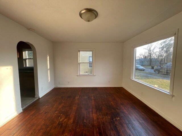 Great single level house with hardwood floors and tile throughout. No carpet! Main level large laundry room with laundry hook ups, detached garage and large kitchen. Great find, no stairs. Fridge and stove included. Tenant pays for all utilities, landscaping and snow removal. Up to 2 pets with pet fee of $300 per pet policy. One year lease including fridge and stove. Non-refundable move in fee of $400. Lease breakage fee applies. $50 application fee is non-refundable. MOVE In SPECIAL 1/2 OFF THE FRIST MONTH'S RENT