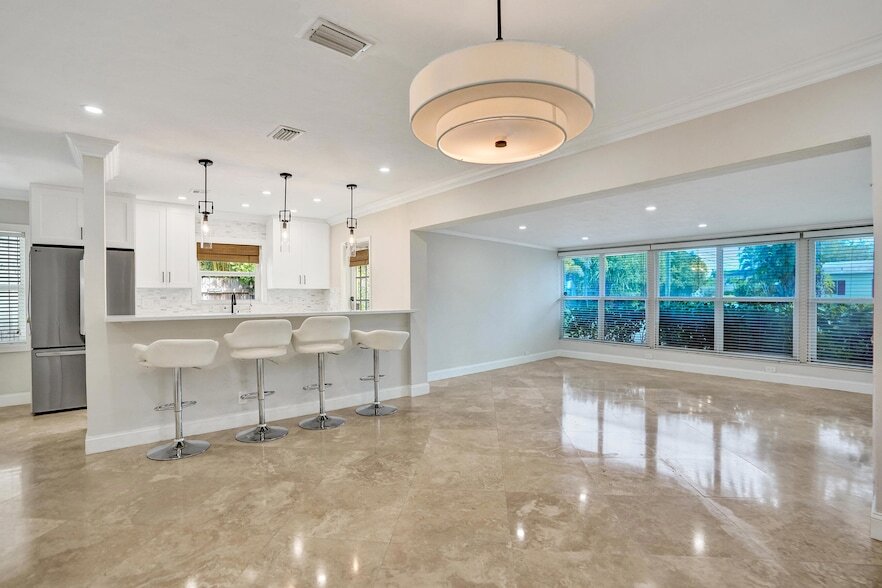MOVE IN READY! Beautiful and spacious 4 Bedroom, 3 Bathroom Pool Home with open floor plan and plenty of natural light. Home is located in desirable Fort Lauderdale area of Lake Ridge, minutes to the Beach, Las Olas and many restaurants. New Modern Kitchen w/ White Shaker Wood cabinets, Quartz countertops w/counter bar seating, pantry, wine cooler & stainless steel appliances. 24 inch Polished Travertine Marble Flooring throughout, Hurricane Impact Windows & Washer/ Dryer. Newly painted interior walls and doors. French doors in the Primary Bedroom that lead to pool area. Plenty of outside storage at this home. Fully fenced corner private lot home with heated pool, paver pool deck & outdoor shower. Plenty of parking. Pets welcome with security deposit. Annual Lease.