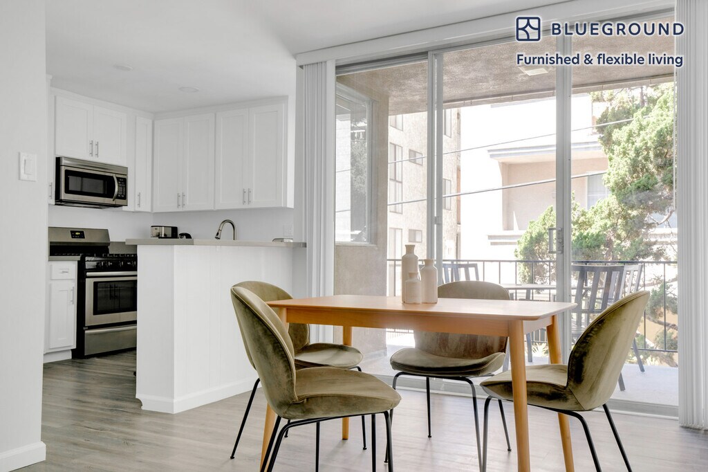 Feel at home wherever you choose to live with Blueground. You’ll love this charming Beverly Grove furnished two bedroom apartment with its modern decor, fully equipped kitchen, and spacious living room. Ideally located, you’re close to all the best that Los Angeles has to offer! (ID #LAX679) The advertised rate of $3,520/month is the lowest available price, based on a 2 month(s) and 14 day(s) stay with a move-in date of December 10, 2025. If you’re looking for a 1-year stay, the rate is $3,910/month. Rates vary depending on the duration of stay, season, and other parameters. For exact pricing and additional pricing components, please visit our website and enter your desired move-in and move-out dates. The rate is applicable when billed upfront; it can be higher if billed in multiple payments. Brokers are welcome to reach out. Were you looking for an unfurnished lease? Try Blueground instead and upgrade from unfurnished to furnished living: - Furnished at rates comparable to unfurnished - No setup or furniture costs - save thousands - Move-in ready - save time, just bring your suitcase Designed with you in mind Thoughtfully designed with bespoke finishes, modern furnishings, and a fully equipped kitchen, you’ll enjoy that “I’m home” feeling with this Blueground apartment. Whether you’re lounging in your charming living room streaming the latest and greatest entertainment on the smart TV or premium wireless speaker, or getting some well-earned rest on the superior quality mattress with luxury linens, you’ll fall in love with everything this Beverly Grove apartment has to offer. Sleeping arrangements King Bed, 70.8in/180cm Queen Bed, 63in/160cm Amenities Building amenities unique to this two bedroom apartment include an on-site: - Dryer in building - Elevator - Washing machine in building - Parking - Pets allowed Arrival and ongoing support The entire apartment is yours to enjoy! Throughout your stay, you’ll have access to our Client Experience team through the Blueground App. You can schedule additional cleanings, submit maintenance requests, and view our neighborhood recommendations with just a few taps. We’ll share all details upon confirmation of your stay. Ideally Located This furnished apartment is located in Beverly Grove, perfectly situated between West Hollywood, La Brea, Fairfax and Beverly Hills. Life here revolves around two major shopping centers: The Grove and The Beverly Center, which both house their own collection of high-end stores and name-brand eateries. This Mid-City neighborhood is markedly quiet with sprawling blocks of modern homes. Other landmarks of Beverly Grove include the Cedars Sinai Medical Center and the Four Seasons Los Angeles at Beverly Hills. Other things to note Building amenities may have an extra cost. This Blueground apartment has flexible lease options, allowing you to book it for one month, a year, or more. Pets are welcome, though weight limits and breed restrictions apply and may incur fees. Parking is offered based on availability and is subject to a fee. We take great pride in ensuring every photo displayed is shot in our own units with our actual furnishings. That said, we regularly refresh our decor and furniture arrangement, which may differ from what’s pictured. [SI]