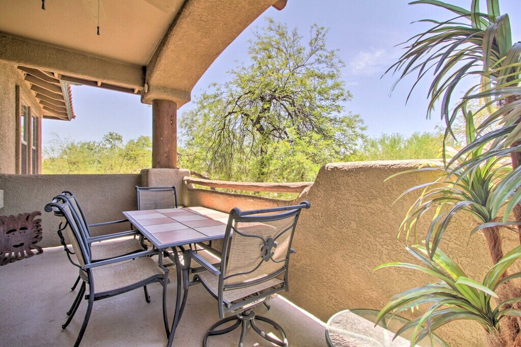 Feel at home in this 2-bedroom, 2-bathroom condo in Scottsdale. Note that stairs are required for access to this second-floor property. This well-appointed condo features smart TVs with cable, a private balcony with an outdoor dining area, a gas fireplace, and a dining area. The kitchen is equipped with cooking basics, Keurig and drip coffee makers, coffee and a coffee grinder, a stove/oven, refrigerator, microwave, hot water pot, knife block, toaster oven, dishwasher, dishware and flatware, a Crockpot, and a garbage disposal. Additional amenities include free Wi-Fi, keyless entry, linens and towels, shampoo, laundry detergent, an in-unit washer and dryer, central air conditioning, a hair dryer, an iron and board, trash bags, and paper towels. Parking is available for one vehicle in the driveway and one vehicle in the community lot. You'll have access to all of Scottsdale’s attractions. Enjoy the spacious on-site pool, walking trails, and grilling areas. Shopping is nearby and there are mountain views. No pets are allowed. No events, parties, or large gatherings are permitted. By booking this property, you agree to comply with City of Scottsdale Ordinance 4655 (the “Scottsdale Ordinance”). Pursuant to the Scottsdale Ordinance, this property requires a sex offender background check and you agree to provide any additional information required to confirm your eligibility to make this booking. A photo ID may be required upon check-in. Additional fees and taxes may apply. Includes a laptop-friendly workspace. [SI]