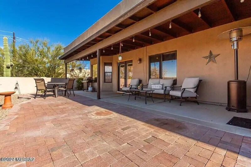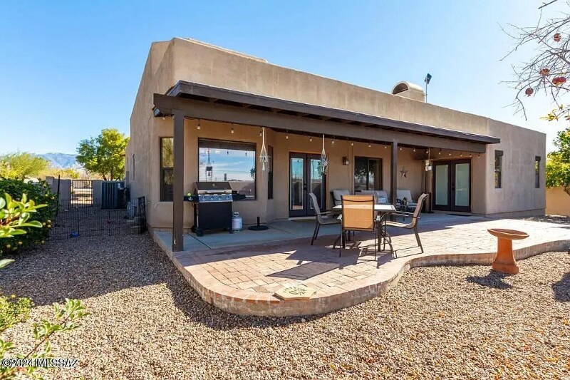 Property Id: 2011188 Embrace the charm of this remarkable 3 Bedroom, 2 Bathroom Santa Fe-style home situated on an expansive lot in Oro Valley, flanked by common area on both sides. Warm and inviting through the entrance of solid wood entry doors. This home has generously sized rooms, high ceilings, a delightful Kiva Fireplace. The Chef's kitchen is a culinary delight, featuring ample prep space, a convenient breakfast bar, abundant cabinet space and sleek Bosch appliances. Enjoy the seamless flow of tile throughout, complemented by fresh interior paint and a brand-new roof coating. New HVAC system replaced in 2024. Newly installed drip system to enhance the landscaping. New exterior paint is in the process. This home blends style with functionality, epitomizing the essence of refined living in Oro Valley. Located within Amhi school district and within walking distance to Wilson PreK-8 and Ironwood Ridge High School. Presently furnished as an Airbnb, could lease with or without furnishings.