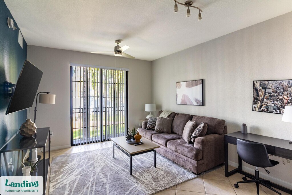 Landing offers flexible lease terms from weeks to months. Please always visit our website or contact us for the latest pricing & availability. Stay longer, save more: 6-Month Minimum base rent: starts at $3008/mo 12-Month Minimum base rent: starts at $2596/mo Landing offers flexible leases across a network of over 35,000 fully-furnished apartments throughout 375+ cities so you can rent on your terms, practically anywhere, and avoid the hassle of paying deposits or application fees. Visit to learn about all the benefits of a Landing membership, see our competitive up-to-date pricing, explore available apartments, take virtual tours, and make reservations online without jumping through traditional rental hoops. Landing's apartments at Mosaic at Miramar are designed for comfortable, easy living, with the ability to stay as long as you like. Experience living with Landing Every apartment is outfitted with all the modern essentials including: custom-designed furnishings, a fully-equipped kitchen with deluxe stainless steel appliances, a gourmet coffee maker, premium linens, Smart TVs, and incredibly fast, reliable internet for working from home. When you live with Landing, you'll enjoy a hassle-free experience with the added benefit of 24/7 access to our dedicated member experience team. Some of the nitty-gritty: a background check and proof of income are required; we're completely smoke-free; bundled utility packages and pricing vary based on length of stay; pet-friendly options available; listed price reflects a 12-month minimum stay.
