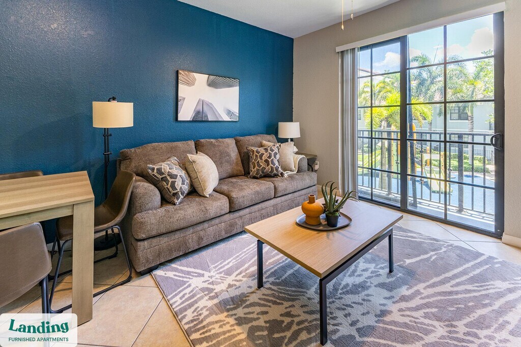 Landing offers flexible lease terms from weeks to months. Please always visit our website or contact us for the latest pricing & availability. Stay longer, save more: 6-Month Minimum base rent: starts at $3008/mo 12-Month Minimum base rent: starts at $2596/mo Landing offers flexible leases across a network of over 35,000 fully-furnished apartments throughout 375+ cities so you can rent on your terms, practically anywhere, and avoid the hassle of paying deposits or application fees. Visit to learn about all the benefits of a Landing membership, see our competitive up-to-date pricing, explore available apartments, take virtual tours, and make reservations online without jumping through traditional rental hoops. Landing's apartments at Mosaic at Miramar are designed for comfortable, easy living, with the ability to stay as long as you like. Experience living with Landing Every apartment is outfitted with all the modern essentials including: custom-designed furnishings, a fully-equipped kitchen with deluxe stainless steel appliances, a gourmet coffee maker, premium linens, Smart TVs, and incredibly fast, reliable internet for working from home. When you live with Landing, you'll enjoy a hassle-free experience with the added benefit of 24/7 access to our dedicated member experience team. Some of the nitty-gritty: a background check and proof of income are required; we're completely smoke-free; bundled utility packages and pricing vary based on length of stay; pet-friendly options available; listed price reflects a 12-month minimum stay.