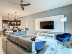 Experience the thrill of the new Epic Universe park, just minutes away from this spacious vacation condo at Champions Gate. Designed with the magic of Walt Disney World in mind, this condo offers a premium location and elegant style, making it an excellent choice for a family vacation. The property features a fully equipped kitchen, air conditioning, and a game room, ensuring you feel at home during your stay. Enjoy full complimentary access to the resort's amenities, including a gym, heated swimming pools, a lazy river, and a water park. The main clubhouse, Oasis Club, is just a 7-minute drive away and offers a variety of activities such as a spa center, golf, and a restaurant, some of which may require an additional fee. The condo itself is equipped with four smart TVs, a washer/dryer, and high-speed internet, providing all the comforts you need. Paid add-ons include access to the spa center, golf, and restaurant at the resort. Additional services such as Pack and Play, high chair, early check-in, and late check-out are available for an extra cost. Free parking is provided for your convenience. Located in the heart of Champions Gate, this condo is within walking distance of a clubhouse and just a short drive from major attractions like Disney World Magic Kingdom, Universal Studios, and Sea World. Nearby, you'll find a variety of shopping outlets, supermarkets, and local restaurants, ensuring convenience and entertainment are always at your fingertips. Transportation options like Uber and Lyft are readily available, making it easy to explore the area. Guests must be at least 18 years old to book a reservation. No unregistered guests, smoking, or pets are allowed inside the property. The condo features a side entry and utilizes keyless entry with a code provided prior to check-in. A safety protocol is in place to ensure the well-being of guests and personnel, and check-out care follows World Health Organization standards. To access the resort, guests must share a guest list to create and share QR codes, which is an unavoidable requirement. The condo offers high-speed internet, making it remote work-friendly. A laptop computer is not included, but the space is designed to accommodate your work-from-home needs. [SI]