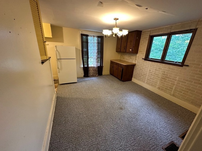 This second floor apartment is located in an old victorian home made up of 4 units. This unit has large bedroom, bathroom, living room, dining room and kitchen. There is also laundry available in the basement. Pets will be considered. NO HUD $750 security deposit required. Rent includes water, garbage and sewage. One year lease. Application is required before all showings. Must fill out application before showings, please use following link.