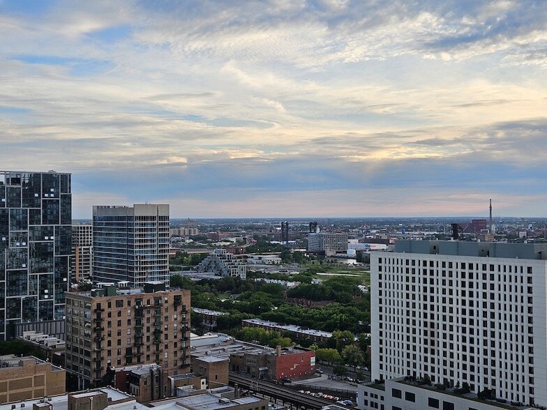 Experience the best of city living in this bright and airy split-bedroom condo in the heart of the South Loop. This thoughtfully designed home features an expansive living and dining area with beautiful hardwood floors and floor-to-ceiling windows, offering breathtaking south and east views. A standout feature is the extra-wide private balcony that spans the entire width of the home-accessible from both the living room and the primary bedroom-perfect for enjoying morning coffee, dining al fresco, or simply soaking in the city skyline. The open-concept galley kitchen is equipped with sleek stainless steel appliances, ample cabinetry, and a functional layout ideal for both cooking and entertaining. The oversized primary suite is a true retreat, boasting a generous walk-in closet and a spa-like stone bath with a luxurious soaking tub and a walk-in shower. The spacious second bedroom also offers a wall of windows, a walk-in closet, and plenty of natural light. Professionally managed building with 24-hour door staff, Top-floor exercise room with panoramic views Entertainment suite and conference room for work or social gatherings. Prime South Loop location near public transportation, Trader Joe's, Jewel-Osco, and an array of dining and shopping options. Don't miss this opportunity to own a beautifully appointed condo with stunning views and a versatile private balcony!