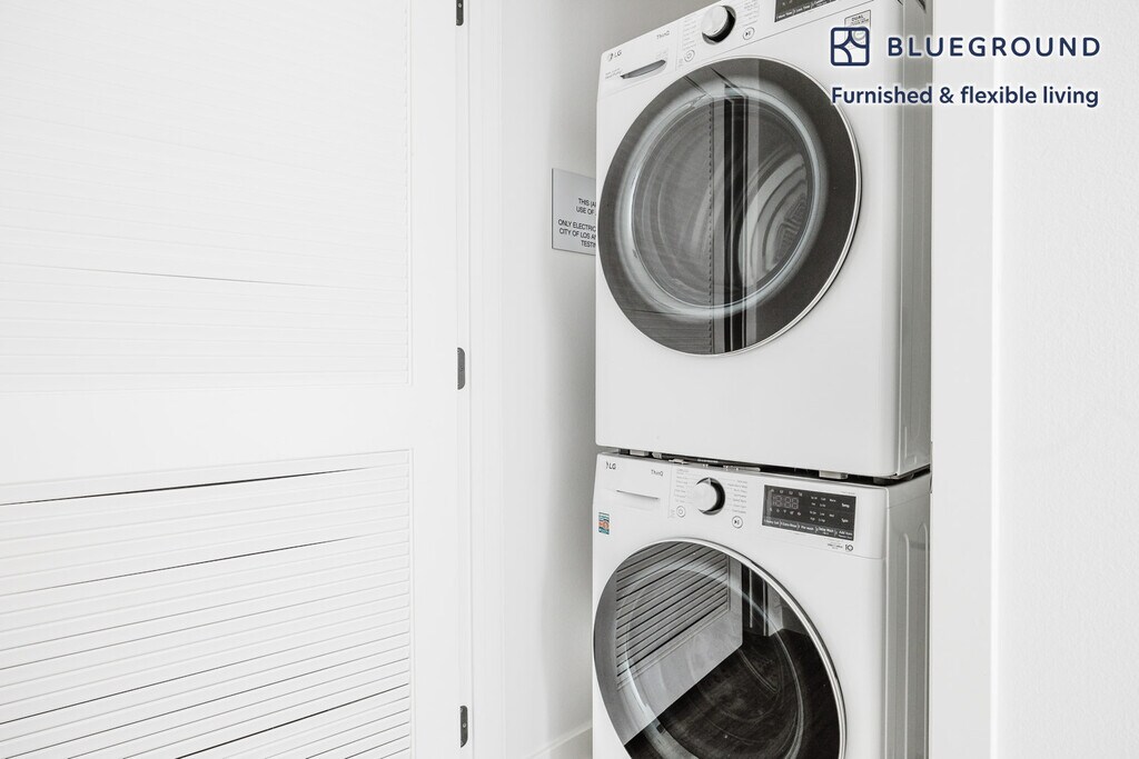 Show up and start living from day one in Los Angeles with this stylish two bedroom Blueground apartment. You’ll love coming home to this thoughtfully furnished, beautifully designed, and fully equipped Sawtelle home. (ID #LAX1201) The advertised rate of $4,510/month is the lowest available price, based on a 11 month(s) and 29 day(s) stay with a move-in date of June 1, 2027. Rates vary depending on the duration of stay, season, and other parameters. For exact pricing and additional pricing components, please visit our website and enter your desired move-in and move-out dates. The rate is applicable when billed upfront; it can be higher if billed in multiple payments. Brokers are welcome to reach out. Were you looking for an unfurnished lease? Try Blueground instead and upgrade from unfurnished to furnished living: - Furnished at rates comparable to unfurnished - No setup or furniture costs - save thousands - Move-in ready - save time, just bring your suitcase Designed with you in mind Thoughtfully designed with bespoke finishes, modern furnishings, and a fully equipped kitchen, you’ll enjoy that “I’m home” feeling with this Blueground apartment. Whether you’re lounging in your cozy living room streaming the latest and greatest entertainment on the smart TV or premium wireless speaker, or getting some well-earned rest on the superior quality mattress with luxury linens, you’ll fall in love with everything this Sawtelle apartment has to offer. This apartment also offers in-apartment laundry. Sleeping arrangements King Bed, 70.8in/180cm Queen Bed, 63in/160cm Amenities Building amenities unique to this two bedroom apartment include an on-site: - Dryer - Elevator - Swimming pool - Washing machine - Parking Arrival and ongoing support The entire apartment is yours to enjoy! Throughout your stay, you’ll have access to our Client Experience team through the Blueground App. You can schedule additional cleanings, submit maintenance requests, and view our neighborhood recommendations with just a few taps. We’ll share all details upon confirmation of your stay. Other things to note Building amenities may have an extra cost. This Blueground apartment has flexible lease options, allowing you to book it for one month, a year, or more. Parking is offered based on availability and is subject to a fee. We take great pride in ensuring every photo displayed is shot in our own units with our actual furnishings. That said, we regularly refresh our decor and furniture arrangement, which may differ from what’s pictured. [SI]