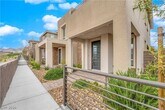 Highly upgraded townhome in Moro Rock - Summerlin West. A welcoming covered porch leads into an open main level with a spacious kitchen featuring a large island, generous pantry, and dining area. The living room opens through a 10 center-meet sliding door to a covered patio with a built-in grill, creating a seamless indoor-outdoor flow. A powder room and attached 2-car garage complete the first floor. Upstairs offers a laundry closet and three well-sized bedrooms, including a primary suite with a large walk-in closet and a private bath with dual sinks. Enjoy mountain and Strip views, low-maintenance living, and convenient access to trails, shopping, dining, golf, schools, and the 215 Beltway.