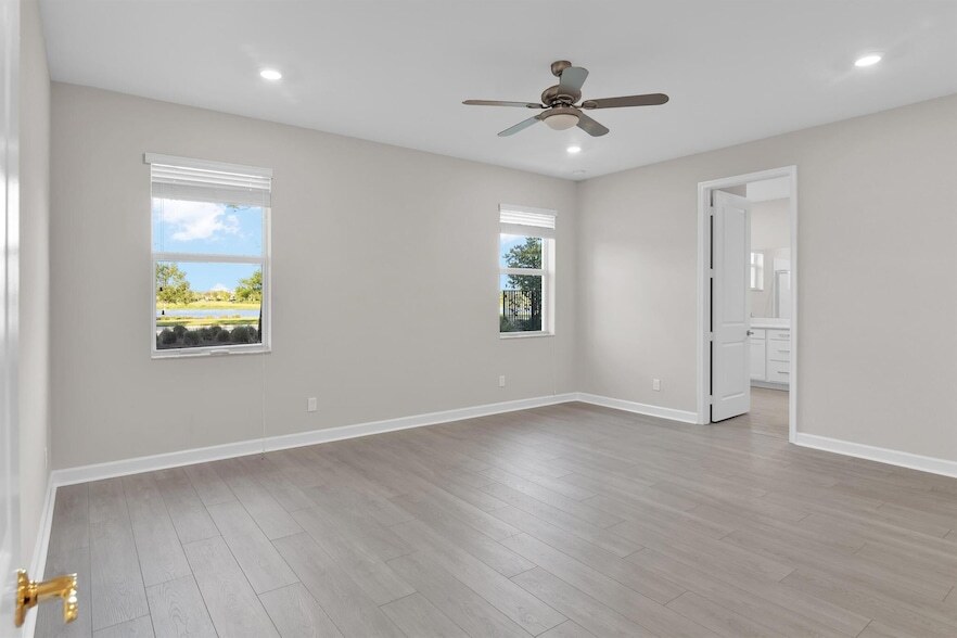 Wonderfully renovated Holly Model on a quiet corner lot, just footsteps away from the lake, walking trails and the playground. This model (5 beds / 3.5 baths + office _ game room) offers gorgeous deep lake views, has the primary suite downstairs with an additional large, very private office space. All other bedrooms are upstairs and connected through an entertainment foyer - perfect as a play area, game room or hangout. The house comes with a huge 3 car garage and plenty of storage space on the inside.The brand new Saddle View Elementary school is just a quick Golf Cart ride away.
