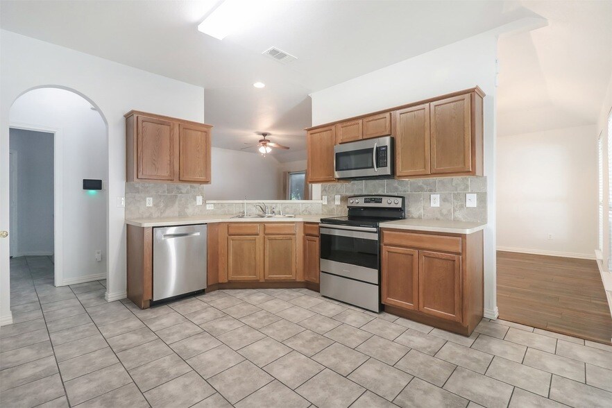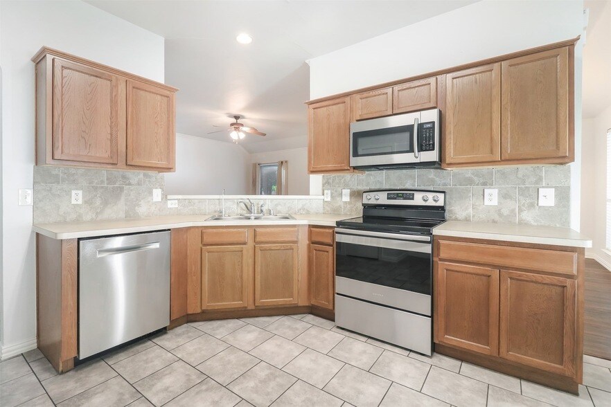 Spacious and recently updated 3 bed 2 bath home located in the quiet and highly sought after Eastridge neighborhood of Red Oak! Interior features include spacious open living area with beautiful stone fireplace, fresh paint throughout, vaulted ceilings, and a large kitchen with lovely cabinetry. Large master suite boasts crown molding, dual sinks in bath, separate glass shower enclosure, garden tub, and sizeable walk-in closet. Home includes washer and dryer, along with full water filtration and softening system. Landlord requirements include a minimum 640 credit score, income 3x monthly rent, clean background and rental history with no previous evictions, convictions, or broken leases. Small pets okay on a case-by-case basis. Come see this one today!