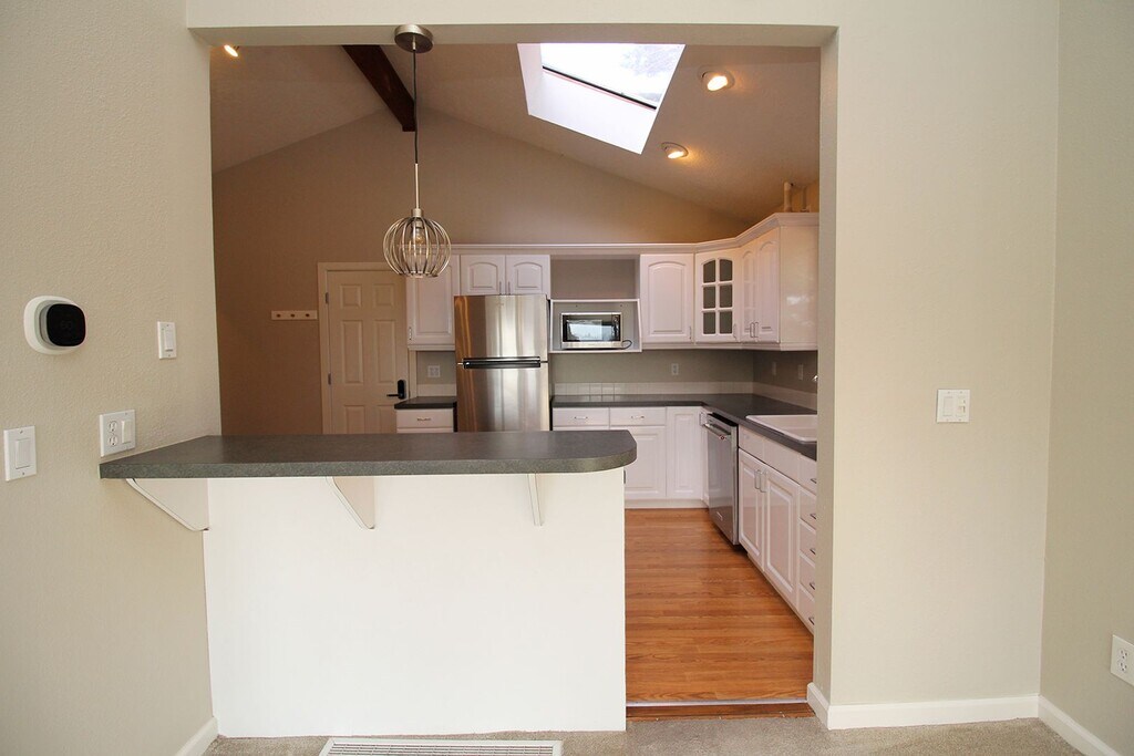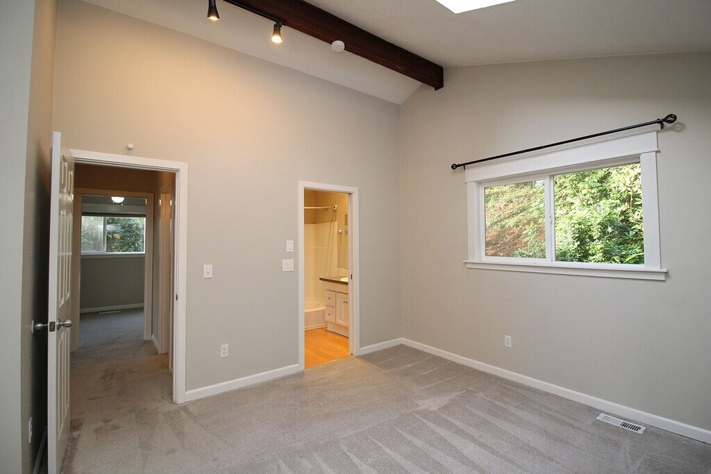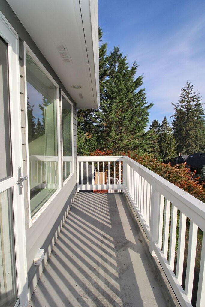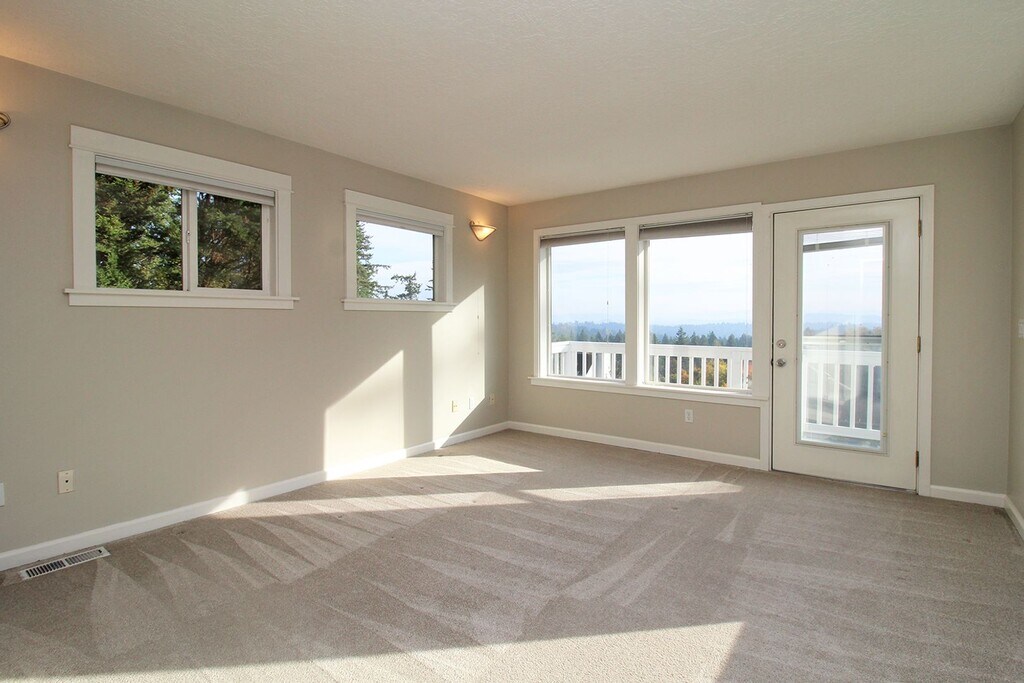 This is an absolutely gorgeous modern apartment home on the upper two floors with wrap-around deck, balcony and amazing view of the valley, Mt. Hood and a glimpse of Mt. St. Helens. There is a large side yard which sits on a large greenspace with a small creek running by. Features Include: • 3 Bedrooms • 1 Bathroom • 1,748 sq feet • Enter through the front door of the duplex into a shared common area • Stunning views, loads of windows fill the spaces with natural light, designer architectural touches throughout! • Vaulted Living Room with wrap-around windows and a fantastic 2 story gas fireplace • Dining Area with door to deck • Separate Family/Media area off the Living Room with built-in bookcase and another door to the deck • Beautifully updated Kitchen with huge skylight, eating bar, hi-quality stainless appliances and a built-in desk • 2 Bedrooms on the main – the larger one has vaulted ceilings, skylight, slider to the deck and direct access to the bathroom. • The upper Bedroom has wraparound windows and a private balcony • Charming entry hall that leads to both the upper and lower units • Shared washer & dryer attached garage off the entry hall • Central AC! • 1 parking space in the driveway & 1 at the end of the street, just below the house • There is a monthly surcharge to cover water/sewer/electric/garbage/gas: $290.00 • Great neighborhood – blocks to Loll Wildlife Natural Area and Kerr Natural Area and easy access to shopping, restaurants, freeway and PCC Sylvania Campus. • Don’t miss your opportunity to call this incredible unit home! -- Renter's Insurance Required -- * 1 small dog considered with additional deposit. Sorry, no cats. ** Note: This unit is not ADA compliant
