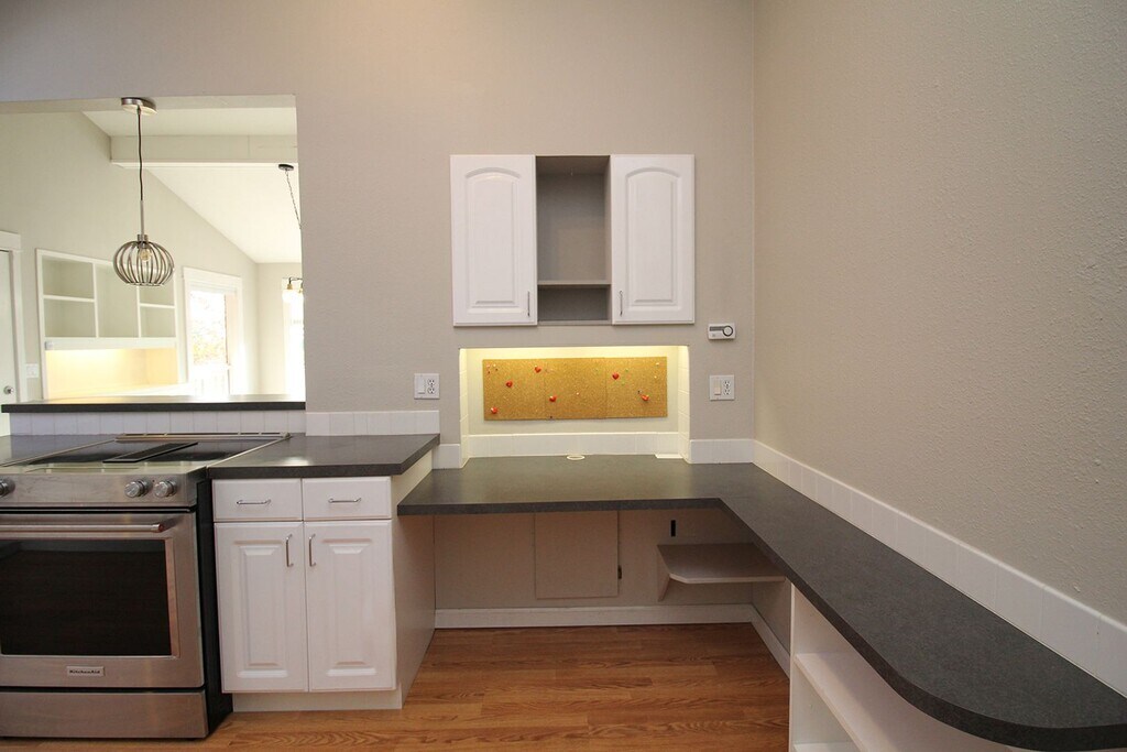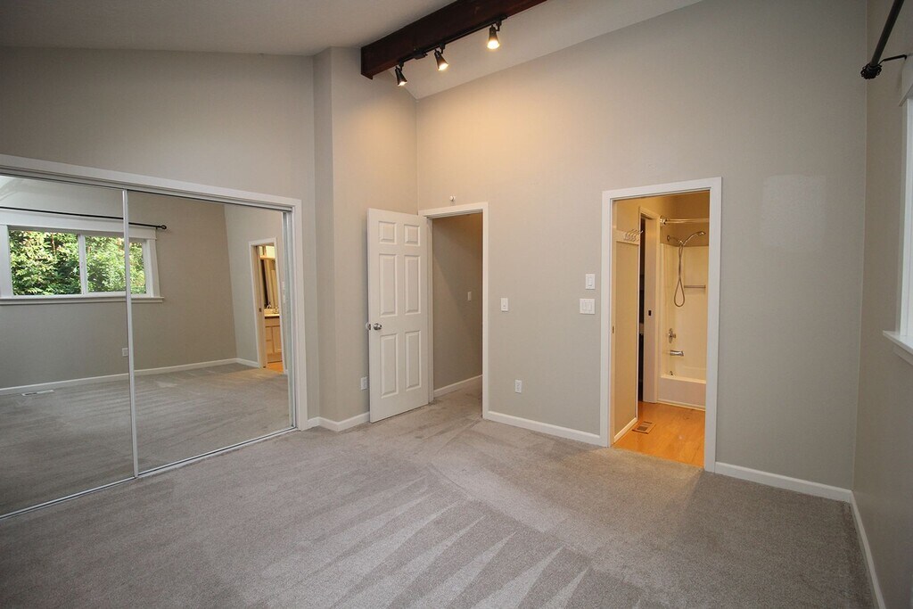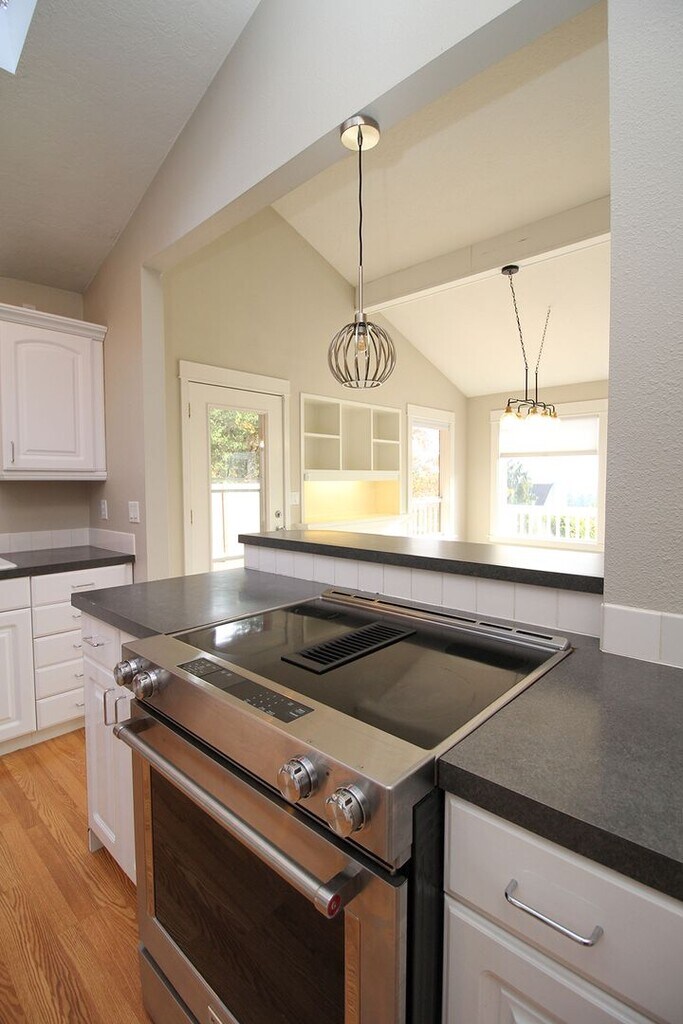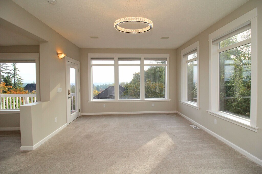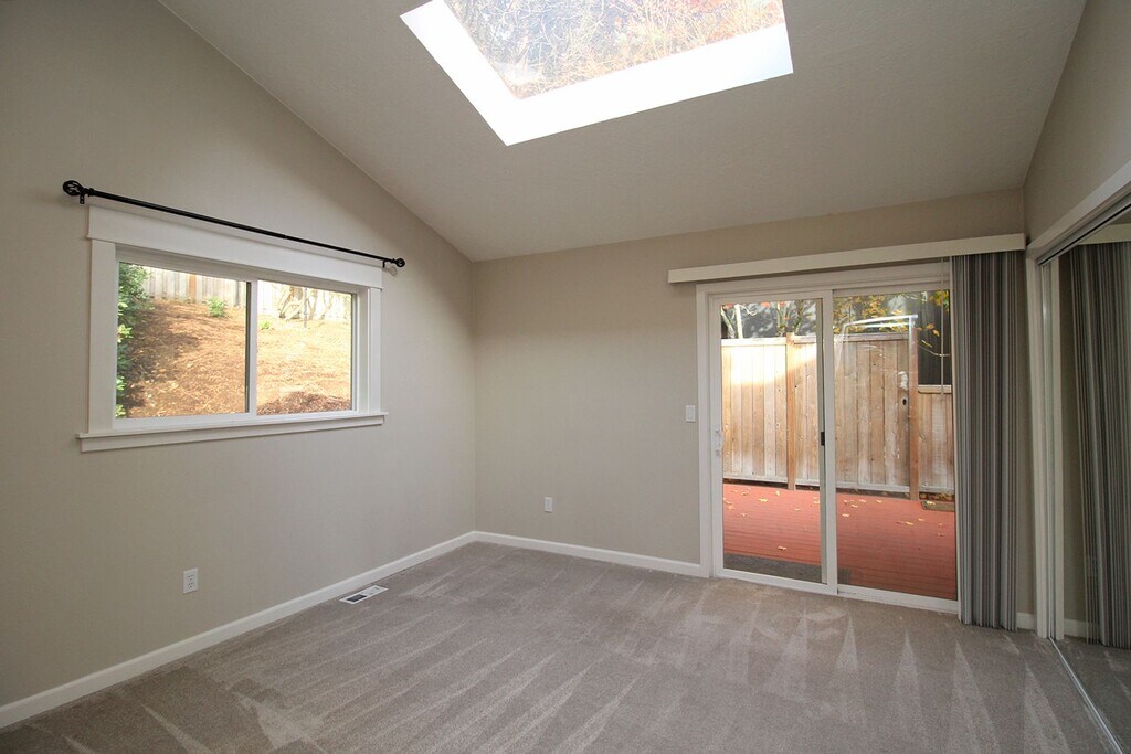 This is an absolutely gorgeous modern apartment home on the upper two floors with wrap-around deck, balcony and amazing view of the valley, Mt. Hood and a glimpse of Mt. St. Helens. There is a large side yard which sits on a large greenspace with a small creek running by. Features Include: • 3 Bedrooms • 1 Bathroom • 1,748 sq feet • Enter through the front door of the duplex into a shared common area • Stunning views, loads of windows fill the spaces with natural light, designer architectural touches throughout! • Vaulted Living Room with wrap-around windows and a fantastic 2 story gas fireplace • Dining Area with door to deck • Separate Family/Media area off the Living Room with built-in bookcase and another door to the deck • Beautifully updated Kitchen with huge skylight, eating bar, hi-quality stainless appliances and a built-in desk • 2 Bedrooms on the main – the larger one has vaulted ceilings, skylight, slider to the deck and direct access to the bathroom. • The upper Bedroom has wraparound windows and a private balcony • Charming entry hall that leads to both the upper and lower units • Shared washer & dryer attached garage off the entry hall • Central AC! • 1 parking space in the driveway & 1 at the end of the street, just below the house • There is a monthly surcharge to cover water/sewer/electric/garbage/gas: $290.00 • Great neighborhood – blocks to Loll Wildlife Natural Area and Kerr Natural Area and easy access to shopping, restaurants, freeway and PCC Sylvania Campus. • Don’t miss your opportunity to call this incredible unit home! -- Renter's Insurance Required -- * 1 small dog considered with additional deposit. Sorry, no cats. ** Note: This unit is not ADA compliant