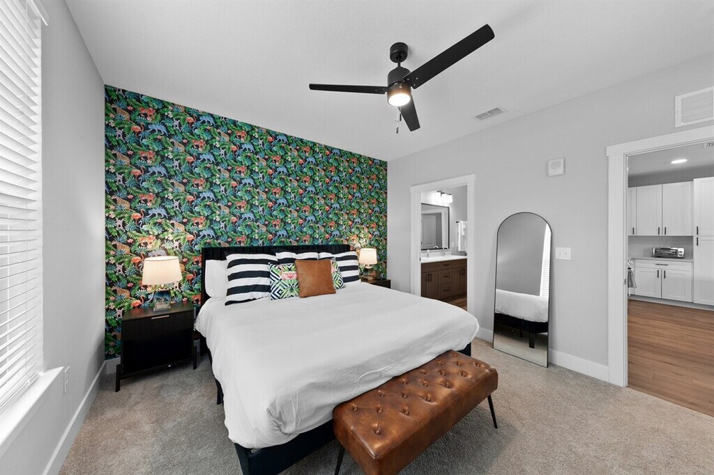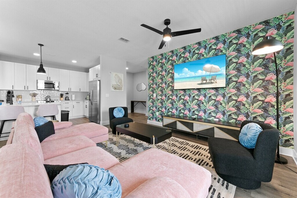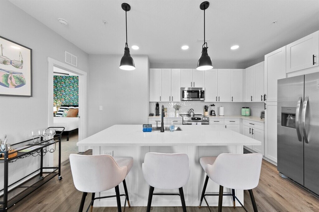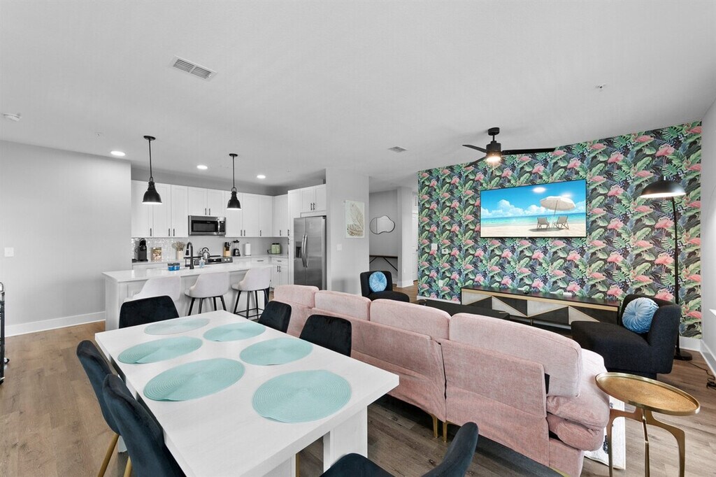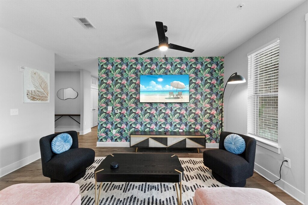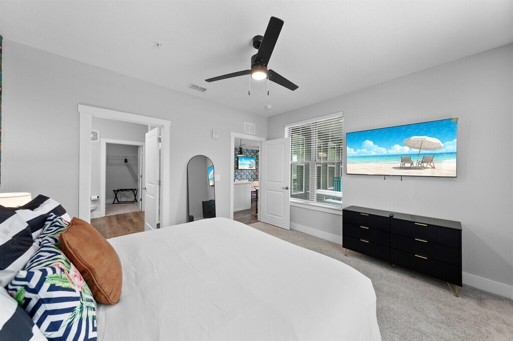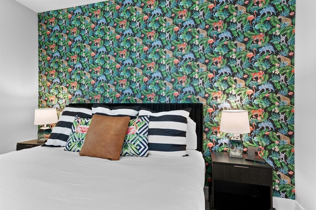 Contact us for seasonal discounts! This tropics-inspired 3-bedroom, 2-bathroom apartment is your idyllic paradise. Enjoy a spacious master suite with an en-suite bathroom, two comfy bedrooms, a fully equipped kitchen, and a private balcony with games. Nestled in Jacksonville's newest and most exclusive complex with a pool, gym, clubhouse, and meeting rooms, you'll have everything you need for your stay. Close to Mayo Clinic, UNF, beaches, shops, and restaurants, it's the perfect stay for any occasion. Step into a spacious and elegant living area adorned with bright, comfortable furnishings creating a cozy, inviting atmosphere. Large windows bring in abundant natural light, enhancing the elegant ambiance perfect for relaxing, entertaining, or working remotely. The fully equipped modern kitchen, with its modern appliances and generous counter space, is perfect for preparing delicious meals and snacks during your stay. Each of the three beautifully appointed bedrooms features plush bedding and spacious closets, designed to ensure restful, rejuvenating nights for all guests. The luxurious bathrooms offer spacious showers, ample counter space, and premium amenities, providing everything you need for a refreshing and comfortable stay. The pet fee is $150 per pet with a maximum of one allowed pet. The property will be stocked with basic toiletries, bed linens, kitchen necessities, cleaning supplies, and laundry detergent. Located in the heart of one of Jacksonville’s most vibrant and sought-after areas, this apartment blends luxury, comfort, and convenience. The complex features a secure entrance into your building, and you will have access to all common area amenities including the pool, gym, clubhouse, meeting spaces, and a scenic walking trail. With plenty of free parking available in the complex parking lot, you are close to Mayo Clinic, UNF, beaches, shops, and restaurants. A security hold of $150.00 will be placed on your credit card, similar to what hotels do for incidentals. The security hold will be automatically and fully refunded 3 days after your stay if you do not cause excess cleaning or damage during your stay. You will also have to submit pictures of photo IDs for all adults on the reservation, as this is a requirement of the complex you'll be staying at. Before you arrive, you will be asked to complete guest verification through a third-party provider to ensure compliance with short-term rental regulations and provide extra protection. This should be completed prior to arriving at the property to enable a quick and easy check-in process. Items left behind will be held for up to 14 days. If you'd like an item returned, a $35 lost and found management fee will apply. Guests are required to provide a prepaid shipping label for the return. Double-check for all belongings before checking out. [SI]