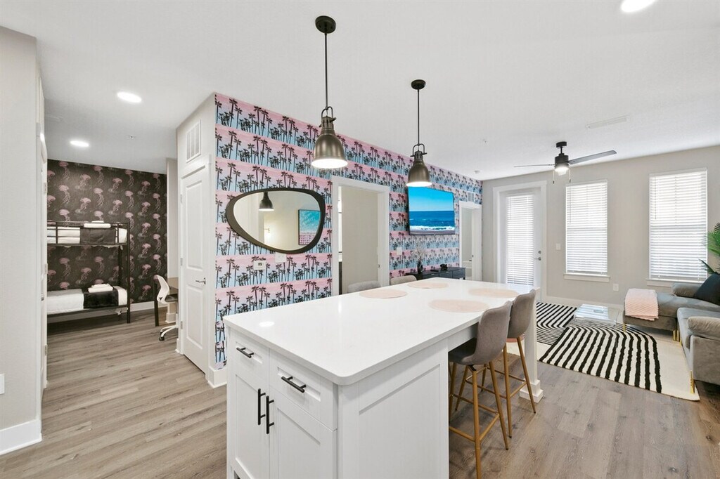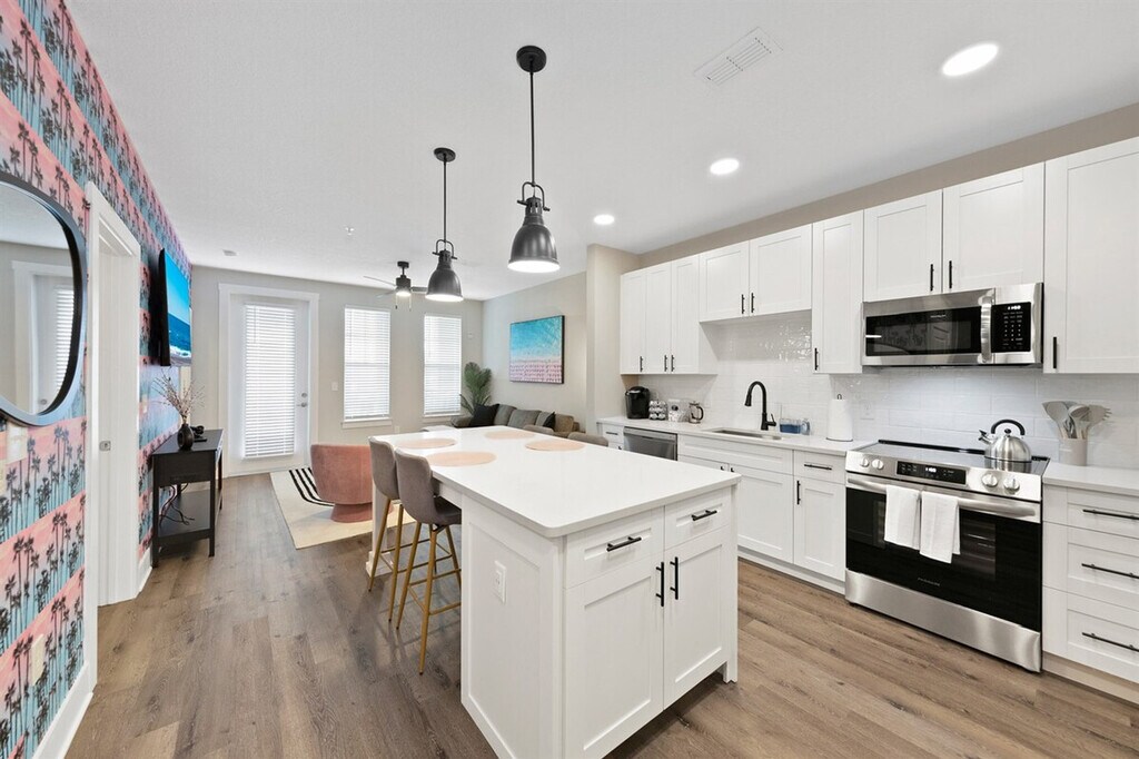 Discover your paradise in this 1-bedroom, 1-bathroom beach-themed property. Revel in a generous master suite with a plush king-size bed, a den with a bunk bed, a fully equipped kitchen, and a private balcony. Located in Jacksonville's newest and most exclusive complex, you’ll have access to a pool, gym, clubhouse, and meeting rooms. Minutes to the Mayo Clinic, UNF, beaches, shops, and restaurants, it's the ideal retreat for any occasion. The apartment boasts a spacious and elegant living area with bright, comfortable furnishings creating a cozy and welcoming space. Large windows allow plenty of natural light, and the elegant design is perfect for relaxing, entertaining, or working remotely. The fully equipped modern kitchen features modern appliances and ample counter space, perfect for preparing delicious meals and snacks. The beautifully appointed bedroom offers plush bedding and a spacious closet for ultimate comfort, designed to provide restful and rejuvenating nights. The versatile den with a bunk bed is perfect for additional guests or children, offering flexible sleeping arrangements to suit families or groups. The luxurious bathroom includes a spacious shower, large counter space, and premium amenities, ensuring a refreshing and comfortable stay. The property allows pets with a fee of $150 per pet, with a maximum of one pet allowed. The complex offers resort-style amenities for guests, including a pool, gym, clubhouse, meeting spaces, and a scenic walking trail, ideal for fitness, relaxation, and social activities. The property offers the perfect blend of luxury and convenience, located in the heart of one of Jacksonville’s most vibrant and desirable areas. The complex features a secure entrance into your building, and you will have access to all common area amenities including the pool, gym, clubhouse, meeting spaces, walking trail, and dog park. Plenty of free parking is available in the complex parking lot. The property will be stocked with basic toiletries, bed linens, kitchen necessities, cleaning supplies, and laundry detergent. A renters agreement will be sent via email to sign, and a security hold of $150 will be placed on your credit card, similar to what hotels do for incidentals. The security hold will be automatically and fully refunded 3 days after your stay if you do not cause excess cleaning or damage. You will also have to submit pictures of photo IDs for all adults on the reservation, as this is a requirement of the complex. Before you arrive, you will be asked to complete guest verification through a third-party provider to ensure compliance with short-term rental regulations and provide extra protection. Lost items will be held for up to 14 days, and a $35 lost and found management fee will apply if you'd like an item returned. Guests must provide a prepaid shipping label for the return. Double-check for all belongings before checking out. [SI]