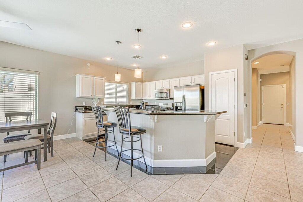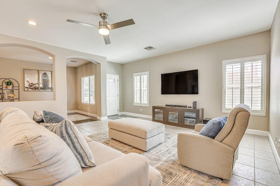 Feel at home in this stunning 3-bedroom, 2-bathroom house in Avondale, AZ. This single-story home requires one step to enter. This beautiful house features a smart TV with Roku, a fire pit, a furnished patio, and outdoor lounge chairs. The kitchen is equipped with a fridge, stove, dishwasher, Keurig (coffee pods provided), microwave, cooking basics, toaster, dishware/flatware, trash bags, and paper towels. Additional amenities include free Wi-Fi, keyless entry, complimentary toiletries, linens/towels, a washer/dryer, ceiling fans, a hair dryer, and an iron/board. Enjoy the private outdoor pool with a depth of 3 to 6 feet. Driveway parking is available for 3 vehicles. Discover your desert oasis with a golf course view. A short drive will lead you to attractions like the Phoenix Raceway and Westgate Entertainment District. Extend your evenings to the spacious backyard. Smoking, pets, events, parties, and large gatherings are not allowed. Additional fees and taxes may apply. A photo ID may be required upon check-in. Your safety matters. This property features 4 external security cameras: 1 Ring doorbell camera located by the front door facing the front entry, 1 camera located by the side gate facing the side yard, 1 camera located on the back of the home facing the pool area, and 1 camera located on the front of the home facing the driveway. The cameras are outward facing and do not look into interior spaces. The cameras record video and sound when activated by motion. [SI]