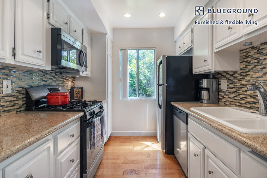 Feel at home wherever you choose to live with Blueground. You’ll love this stylish Brentwood furnished one bedroom apartment with its modern decor, fully equipped kitchen, and charming living room. Ideally located, you’re close to all the best that Los Angeles has to offer! (ID #LAX174) The advertised rate of $3,060/month is the lowest available price, based on a 1 month(s) and 3 day(s) stay with a move-in date of December 20, 2025. If you’re looking for a 1-year stay, the rate is $3,280/month. Rates vary depending on the duration of stay, season, and other parameters. For exact pricing and additional pricing components, please visit our website and enter your desired move-in and move-out dates. The rate is applicable when billed upfront; it can be higher if billed in multiple payments. Brokers are welcome to reach out. Were you looking for an unfurnished lease? Try Blueground instead and upgrade from unfurnished to furnished living: - Furnished at rates comparable to unfurnished - No setup or furniture costs - save thousands - Move-in ready - save time, just bring your suitcase Designed with you in mind Thoughtfully designed with bespoke finishes, modern furnishings, and a fully equipped kitchen, you’ll enjoy that “I’m home” feeling with this Blueground apartment. Whether you’re lounging in your cozy living room streaming the latest and greatest entertainment on the smart TV or premium wireless speaker, or getting some well-earned rest on the superior quality mattress with luxury linens, you’ll fall in love with everything this Brentwood apartment has to offer. This apartment also offers in-apartment laundry. Sleeping arrangements King Bed, 70.8in/180cm Amenities Building amenities unique to this one bedroom apartment include an on-site: - Dryer - Washing machine - Parking - Pets allowed Arrival and ongoing support The entire apartment is yours to enjoy! Throughout your stay, you’ll have access to our Client Experience team through the Blueground App. You can schedule additional cleanings, submit maintenance requests, and view our neighborhood recommendations with just a few taps. We’ll share all details upon confirmation of your stay. Ideally Located This furnished apartment is located in Brentwood, a small area on the Westside of Los Angeles. It is well-known for being one of the wealthiest in the county. The quiet neighborhood features tree-lined streets and impressive, upscale homes. San Vicente Boulevard is the main thoroughfare and is full of Italian eateries and cozy cafes. In addition, the Getty Center museum is also located in Brentwood and offers a world-class art collection that is ideal for culture lovers. Other things to note Building amenities may have an extra cost. This Blueground apartment has flexible lease options, allowing you to book it for one month, a year, or more. Pets are welcome, though weight limits and breed restrictions apply and may incur fees. Parking is offered based on availability and is subject to a fee. Please keep in mind that this is a walk up building. We take great pride in ensuring every photo displayed is shot in our own units with our actual furnishings. That said, we regularly refresh our decor and furniture arrangement, which may differ from what’s pictured. Also note - This apartment is located in a quiet and peaceful area [SI]