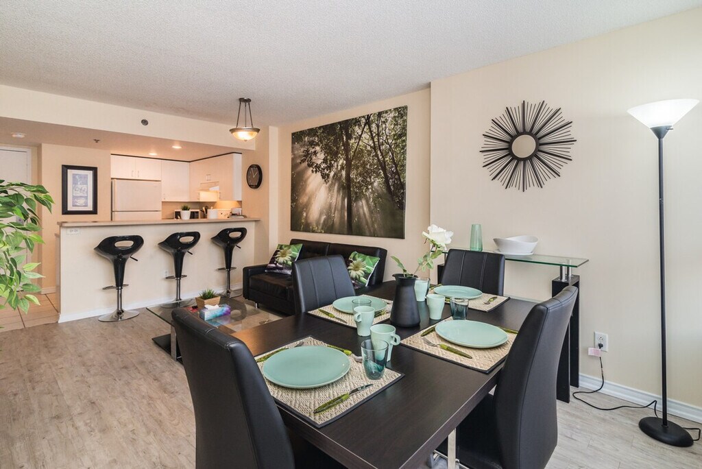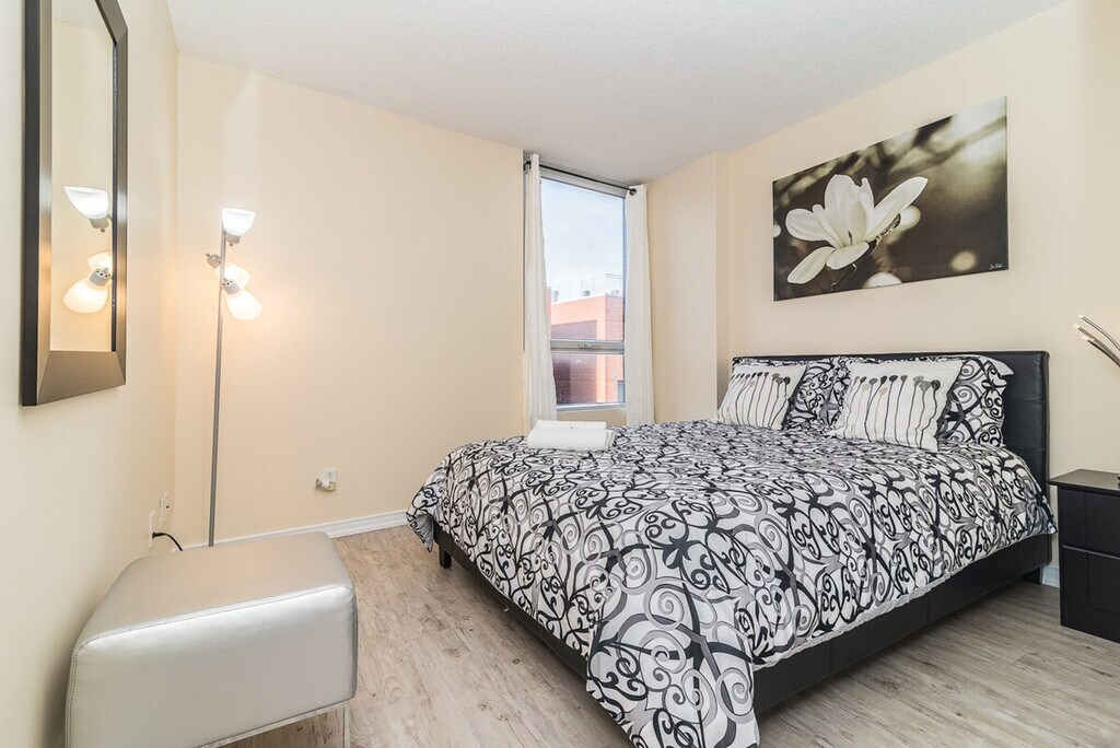 Snag this beautiful apartment for yourself right in the sought-after Quartier des Spectacles neighborhood and you'll experience the very best of Montreal. Fall in love with how easy it is to live in the city, being just minutes away from some of the best restaurants, bars, and cafes around, as well as three metro lines, a bus terminal, and car and bike rental services. Better yet, take the time to explore and just walk to Downtown, Old Montreal, Chinatown, or the Village. Furniture that matches the beautiful zen design of this gorgeous apartment. Enjoy your meals at home at your convenience with the completely equipped kitchen, complete with cozy dining room table. Beautiful large windows flood the apartment with light ideally located right in downtown Montreal. Parking per availability for an additional fee. 31 nights minimum stay is required.