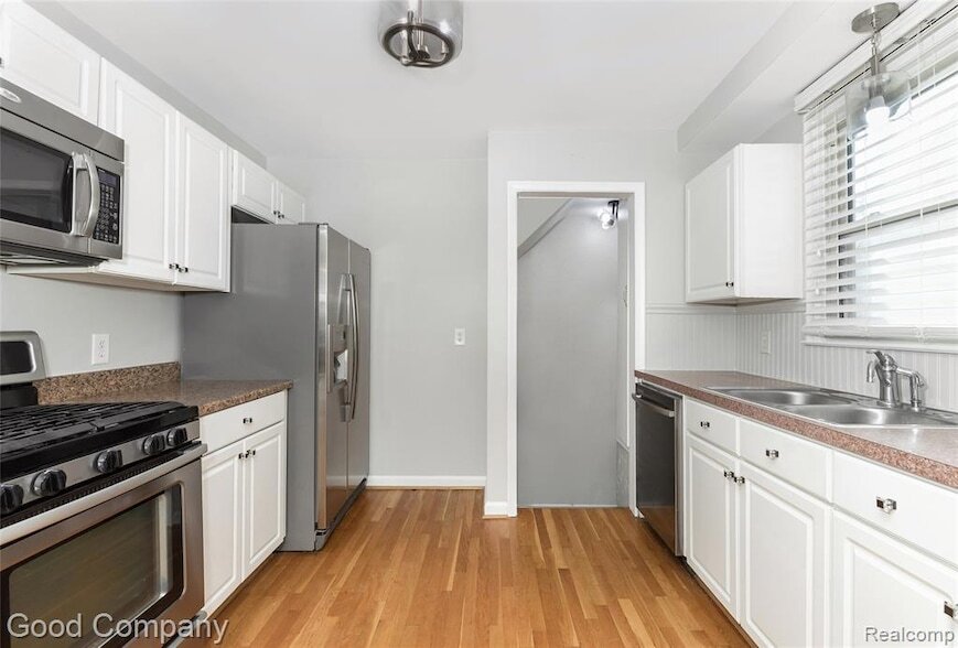 Welcome home to this beautifully updated 3-bedroom, 2 full bathroom bungalow in the heart of Berkley. Fresh paint, new lighting, wood floors, and a completely renovated full bathroom create a clean, modern feel throughout the main living areas. The spacious upstairs primary bedroom features a walk-in closet and new luxury vinyl plank flooring, offering a private retreat ideal for a bedroom, home office, or flex space. Downstairs, the partially finished basement has been refreshed and provides valuable additional living space perfect for a home office, workout area, or entertainment room. Enjoy outdoor living in the fenced backyard, and take advantage of the long driveway with ample parking. This home is ideally located just minutes from downtown Berkley and downtown Royal Oak, with easy access to shopping, restaurants, parks, and major commuting routes.