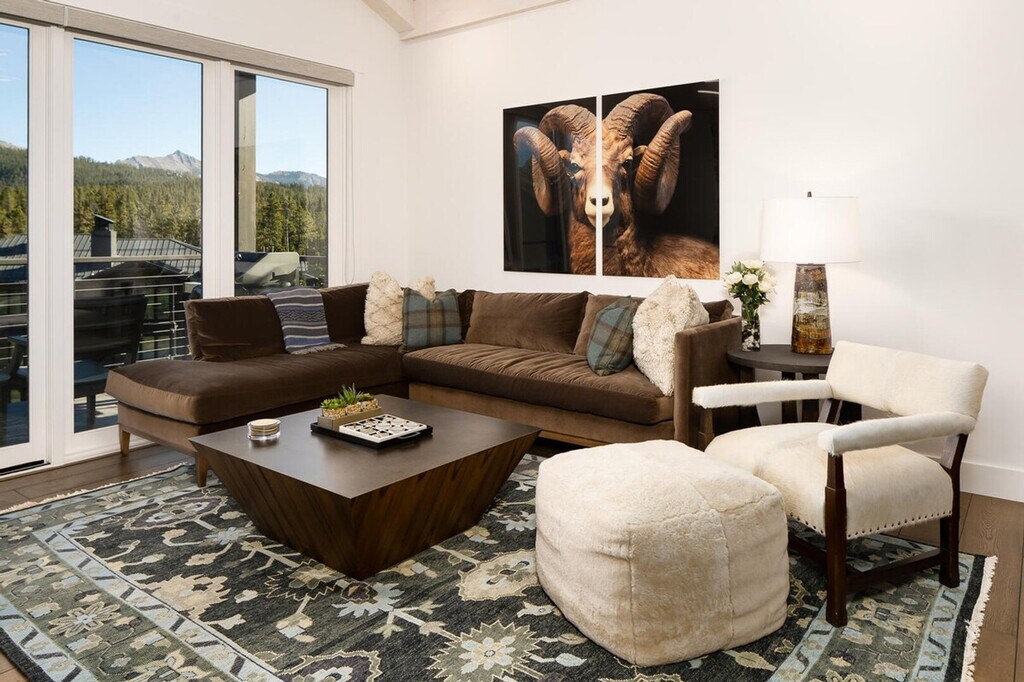 Centrally located near the entryway of Moonlight Basin, this comfortable condo offers great ski-in/ski-out access to the Stagecoach ski lift and a communal firepit. Nestled amidst the snowy expanse of Big Sky, this two-bedroom gem promises an unforgettable escape. Step outside and you're greeted by the Stacey's Way ski trail, promising days filled with thrilling slopes and chilly winds. After a day of skiing, let the warmth of the garage welcome you as you hang your gear and warm your boots. Ascend to a haven of luxury, where an open floor plan lets conversations flow effortlessly. Picture yourself at the kitchen island or dining table, the aroma of a sumptuous meal filling the air, all crafted with the help of top-notch Wolf and Subzero appliances. Let your favorite tunes from the Sonos sound system set the evening's mood, as you gaze at mountain ranges from the living room or gather around the community firepit. With the master bedroom's gas fireplace, a deep soaking tub, and heated tile floor, relaxation reaches new heights. The guest bedroom, featuring a queen bed with a lofted twin, ensures every member of the group finds their cozy corner. [SI]