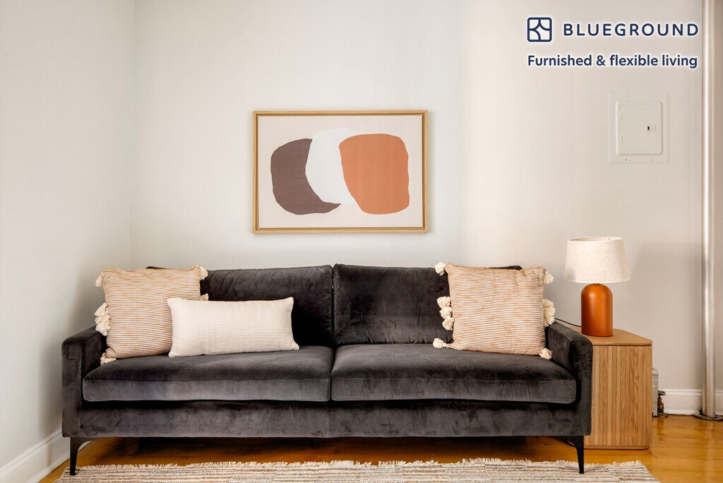Show up and start living from day one in New York with this sophisticated two bedroom Blueground apartment. You’ll love coming home to this thoughtfully furnished, beautifully designed, and fully equipped West Village home. (ID #NYC1256) The advertised rate of $5,820/month is the lowest available price, based on a 1 month(s) and 3 day(s) stay with a move-in date of January 2, 2026. If you’re looking for a 1-year stay, the rate is $7,330/month. Rates vary depending on the duration of stay, season, and other parameters. For exact pricing and additional pricing components, please visit our website and enter your desired move-in and move-out dates. The rate is applicable when billed upfront; it can be higher if billed in multiple payments. Brokers are welcome to reach out. Were you looking for an unfurnished lease? Try Blueground instead and upgrade from unfurnished to furnished living: - Furnished at rates comparable to unfurnished - No setup or furniture costs - save thousands - Move-in ready - save time, just bring your suitcase Designed with you in mind Thoughtfully designed with bespoke finishes, modern furnishings, and a fully equipped kitchen, you’ll enjoy that “I’m home” feeling with this Blueground apartment. Whether you’re lounging in your beautiful living room streaming the latest and greatest entertainment on the smart TV or premium wireless speaker, or getting some well-earned rest on the superior quality mattress with luxury linens, you’ll fall in love with everything this West Village apartment has to offer. This apartment also offers in-apartment laundry. Sleeping arrangements Queen Bed, 63in/160cm Queen Bed, 63in/160cm Amenities Building amenities unique to this two bedroom apartment include an on-site: - Dryer - Washing machine Arrival and ongoing support The entire apartment is yours to enjoy! Throughout your stay, you’ll have access to our Client Experience team through the Blueground App. You can schedule additional cleanings, submit maintenance requests, and view our neighborhood recommendations with just a few taps. We’ll share all details upon confirmation of your stay. Ideally Located This furnished rental is located in the West Village. Cute storefronts and some cobblestone streets give the charming neighborhood the feel of a quaint small town. Populated with shoppers, diners and art lovers. The historically artistic area has numerous piano bars, cabarets, and theaters to discover. Both Times Square and Wall Street are just 15 minutes away by subway. Other things to note This Blueground apartment has flexible lease options, allowing you to book it for one month, a year, or more. Please keep in mind that this is a walk up building. Brokes CYOF. We take great pride in ensuring every photo displayed is shot in our own units with our actual furnishings. That said, we regularly refresh our decor and furniture arrangement, which may differ from what’s pictured.