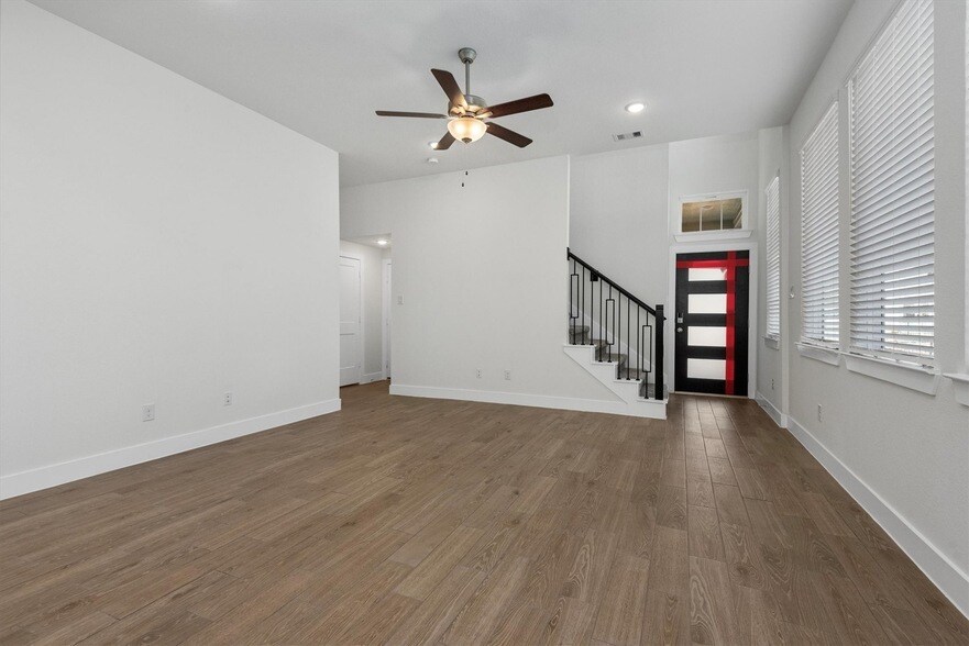 Recent construction in highly desired The Woodlands Hills has only had a one person tenancy and no pets! This Versailles plan from Chesmar Homes features primary bed down and two beds plus game room up! Kitchen has walk-in pantry, huge island and beautiful dark color accents. Primary bath has double sinks, large walk-in shower and closet. Iron rails enhance the staircase. All bedrooms feature walk-in closets.