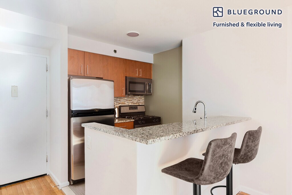 Feel at home wherever you choose to live with Blueground. You’ll love this beautiful Chelsea furnished one bedroom apartment with its modern decor, fully equipped kitchen, and pretty living room. Ideally located, you’re close to all the best that New York has to offer! (ID #NYC2180) The advertised rate of $4,070/month is the lowest available price, based on a 1 month(s) and 29 day(s) stay with a move-in date of December 27, 2025. If you’re looking for a 1-year stay, the rate is $6,930/month. Rates vary depending on the duration of stay, season, and other parameters. For exact pricing and additional pricing components, please visit our website and enter your desired move-in and move-out dates. The rate is applicable when billed upfront; it can be higher if billed in multiple payments. Brokers are welcome to reach out. Were you looking for an unfurnished lease? Try Blueground instead and upgrade from unfurnished to furnished living: - Furnished at rates comparable to unfurnished - No setup or furniture costs - save thousands - Move-in ready - save time, just bring your suitcase Designed with you in mind Gorgeous furniture, fully equipped kitchen, smart TV, and a premium wireless speaker are just a few of the amenities you’ll find inside this one bedroom apartment. Ideally located in New York, you’ll find a lot to love outside as well. When you’re ready to relax, you’ll be happy to discover every Blueground bedroom comes with superior quality mattresses, luxury linens, and cozy towels. We handle everything so you can simply show up and start living. Sleeping arrangements Queen Bed, 63in/160cm Amenities Building amenities unique to this one bedroom apartment include an on-site: - BBQ Area - Doorman - Dryer in building - Elevator - Washing machine in building - Lounge - Pets allowed Arrival and ongoing support The entire apartment is yours to enjoy! Throughout your stay, you’ll have access to our Client Experience team through the Blueground App. You can schedule additional cleanings, submit maintenance requests, and view our neighborhood recommendations with just a few taps. We’ll share all details upon confirmation of your stay. Ideally Located This furnished apartment is located in Chelsea, one of the city’s trendiest neighborhoods. Considered an artistic and creative center, there are over 200 galleries to discover. Ranging from classical to experimental art, there is something for every taste. Take a stroll through the High Line park for a unique perspective and a breath of fresh air. What used to be a railroad, now provides stunning views of Manhattan’s architecture. This area is also known for its various fine dining options and hip nightlife. From Chelsea, JFK Airport is just 30 minutes away by car. Other things to note Building amenities may have an extra cost. This Blueground apartment has flexible lease options, allowing you to book it for one month, a year, or more. Pets are welcome, though weight limits and breed restrictions apply and may incur fees. Brokes CYOF. We take great pride in ensuring every photo displayed is shot in our own units with our actual furnishings. That said, we regularly refresh our decor and furniture arrangement, which may differ from what’s pictured. [SI]