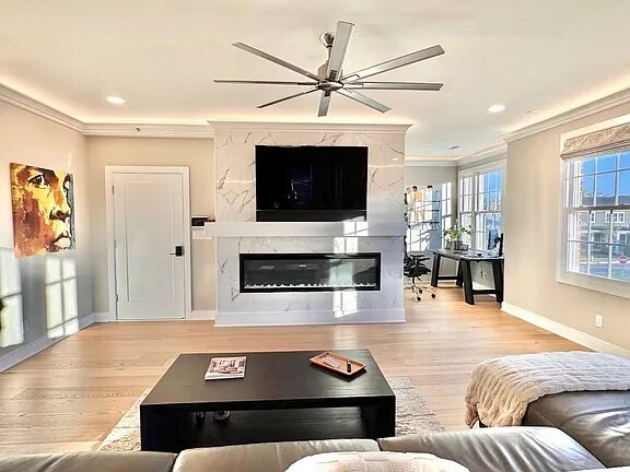 Property Id: 2231209 Experience modern luxury in this custom-built, second-floor condo in the heart of Norton Commons. Less than two years old, it features offset ceiling trim with dimmable LED lighting, a 72" marble-framed fireplace, custom draperies, built-in Klipsch speakers, LG TV with sound bar, Control4 whole-home A/V, and an $18K Yamaha system. Enjoy GE Café appliances with a dedicated ice maker, marble backsplash, a floor-to-ceiling marble shower, upgraded ceiling fans, and included LG washer/dryer. With a detached two-car garage, open layout, and dedicated office, this home blends style and function. Located steps from dining, coffee shops, bars, boutiques, gyms, and yoga studios. LG flat-screen TV and custom sound bar (included with unit)