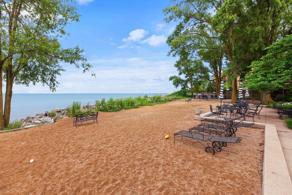 Beautiful Chase On The Lake Condo! Live on the beach! Private beach access from the lovely landscaped courtyard includes a wonderful patio area with new stone BBQ grill and watercraft storage. Spacious 1Br top floor unit features hardwood floors and ample windows. Originally a 2BR unit but the wall was opened to create a more open layout with more entertainment area. Kitchen features cherrywood cabinetry, island counter, SS appliances, and Sub -Zero refrigerator. Great- sized bedroom and updated bath. Well maintained building grounds, laundry room, bike storage areas and enclosed rear porches. You won't find anything similar on the market! ** Property Management firm requires mandatory Resident Benefits Package for an additional $40.00per month; includes renters insurance, positive credit reporting for on-time rental payments, identity fraud protection and more