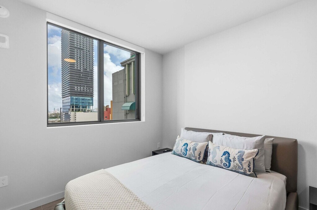 The advertised rate of $7,823/month is the lowest available price, based on a 30 day(s) stay with a move-in date of May 8, 2026. Rates vary depending on the duration of stay, season, and other parameters. For exact pricing and additional pricing components, please visit our website and enter your desired move-in and move-out dates. The rate is applicable when billed upfront; it can be higher if billed in multiple payments. Feel at home in this stylish and modern condo in Downtown Miami. Wake up to breathtaking city views and unwind in a space that blends comfort, elegance, and convenience. This apartment features a private balcony to relax and enjoy the city view, a comfortable living room with a sofa bed and plenty of natural light thanks to large windows, a master bedroom with a king-size bed and private bathroom, and a second bedroom with a queen-size bed. There are also two full, modern, and convenient bathrooms, a fully equipped kitchen with everything you need to prepare your meals, a dining area perfect for group gatherings, and a washer and dryer inside the unit for added convenience. Fast Wi-Fi is available, ideal for work or entertainment. Luxury building amenities include coworking spaces and beautifully designed social areas. Late check-out until 12:00 PM can be arranged for an additional $50, subject to availability, if you contact us 24 hours in advance. Live in the heart of Miami, with everything at your fingertips, including Bayside Marketplace for shopping, dining, and entertainment. The Pérez Art Museum Miami (PAMM) offers contemporary art and international exhibitions. The Kaseya Center is nearby for concerts, sporting events, and live performances. The Metromover and MetroRail provide fast public transportation to Brickell, Wynwood, and Miami Beach. Top-notch restaurants and cafes are in the neighborhood, and parks and green spaces are perfect for walking, running, or relaxing outdoors. Quick access to Miami International Airport is just a 15-minute drive, and the Port of Miami Cruises is ideal if you're planning a Caribbean adventure. Wynwood and the Design District are just minutes away. Smoking is strictly prohibited on the entire property, including inside the unit and on the balcony, and violating this rule may result in severe fines. Reservations must be made by a 21 years old person, and the reservation holder´s presence is required throughout the entire stay. Please respect quiet hours and avoid loud noises, as this is a residential building. A $300 fine applies if violated. No garbage accumulation is allowed. Please use designated trash containers. Standard check-in is at 4:00 PM, and check-out is at 11:00 AM. Failing to meet the checkout time may incur an extra night charge. [SI]