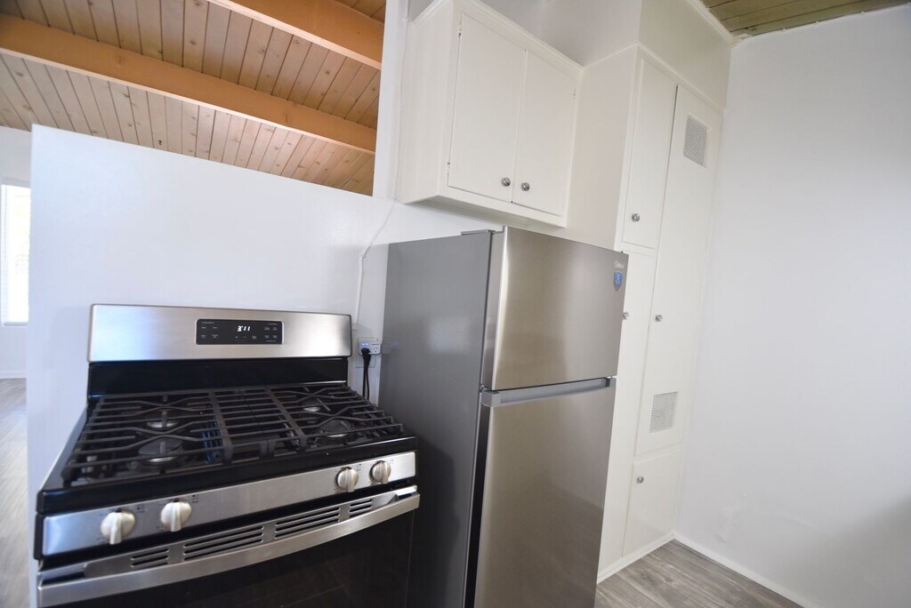 Discover the allure of the Charming Oak Park neighborhood in Santa Barbara with our exquisite 2-bedroom, 1-bath gem. Step onto gleaming hardwood floors that lead you through a cozy haven. Stay comfortable with ceiling fans circulating a gentle breeze. The kitchen boasts an inviting eat-in nook, complete with essential appliances: stove, refrigerator, and countertop microwave. Experience spacious bedrooms adorned with high vaulted woodbeam ceilings that add an element of grandeur. Convenient reserved parking ensures hassle-free arrivals, while onsite laundry simplifies daily chores. Embrace the joy of pet-friendly living in this welcoming community. Indulge in the delightful walkability to nearby parks like Pilgrim Terrace Park, Alice Keck Park, and Alameda Park. Savor the convenience of Carrillo Market & Deli, Ralphs, and C'est Cheese for your shopping needs. Enjoy mornings at Starbucks or Peet's Coffee & Tea. Explore educational opportunities at Antioch University - Santa Barbara, with downtown, beaches, Carpinteria, Ventura, Summerland, and Oxnard just moments away. Elevate your lifestyle in this charming neighborhood; your new Santa Barbara sanctuary awaits!