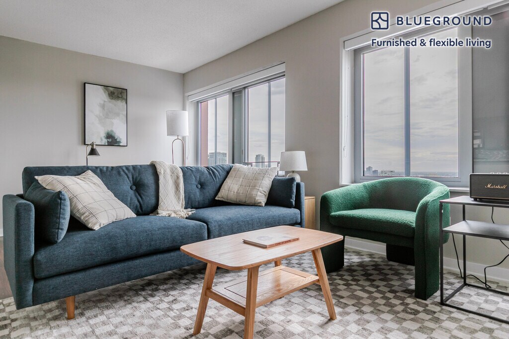 Show up and start living from day one in Chicago with this pretty one bedroom Blueground apartment. You’ll love coming home to this thoughtfully furnished, beautifully designed, and fully equipped Near North home. (ID #CHI1292) The advertised rate of $2,030/month is the lowest available price, based on a 2 month(s) and 29 day(s) stay with a move-in date of November 23, 2025. If you’re looking for a 1-year stay, the rate is $2,720/month. Rates vary depending on the duration of stay, season, and other parameters. For exact pricing and additional pricing components, please visit our website and enter your desired move-in and move-out dates. The rate is applicable when billed upfront; it can be higher if billed in multiple payments. Brokers are welcome to reach out. Were you looking for an unfurnished lease? Try Blueground instead and upgrade from unfurnished to furnished living: - Furnished at rates comparable to unfurnished - No setup or furniture costs - save thousands - Move-in ready - save time, just bring your suitcase Designed with you in mind As with any Blueground apartment, you’ll find a thoughtfully designed space complete with beautiful furniture and a fully equipped kitchen in this one bedroom property. And, thanks to our superior quality mattresses, luxury linens, and towels, you can relax knowing you’ll always feel comfortably at home. When you’re ready for some fun, you can take in the Chicago vibes or bring the entertainment to you with the premium wireless speaker or smart TV. This apartment also offers in-apartment laundry. Sleeping arrangements King Bed, 70.8in/180cm Amenities Building amenities unique to this one bedroom apartment include an on-site: - BBQ Area - Doorman - Dryer - Elevator - Washing machine - Lounge - Pets allowed Arrival and ongoing support The entire apartment is yours to enjoy! Throughout your stay, you’ll have access to our Client Experience team through the Blueground App. You can schedule additional cleanings, submit maintenance requests, and view our neighborhood recommendations with just a few taps. We’ll share all details upon confirmation of your stay. Other things to note Building amenities may have an extra cost. This Blueground apartment has flexible lease options, allowing you to book it for one month, a year, or more. Pets are welcome, though weight limits and breed restrictions apply and may incur fees. We take great pride in ensuring every photo displayed is shot in our own units with our actual furnishings. That said, we regularly refresh our decor and furniture arrangement, which may differ from what’s pictured. Also note - There have been reported instances of homeless populations nearby - This apartment's central location means it can be noisy at times - The apartment is in a busy location, so it will be noisy when your windows are open [SI]