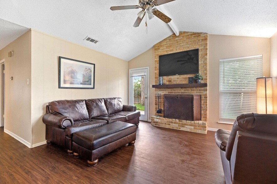 Great size 3 bedroom, 1 bathroom duplex side. Sizable, private backyard fully fenced in quiet neighborhood close to Round Rock highschool. Comfortable living areas with fireplace and open concept. A lot off natural light.