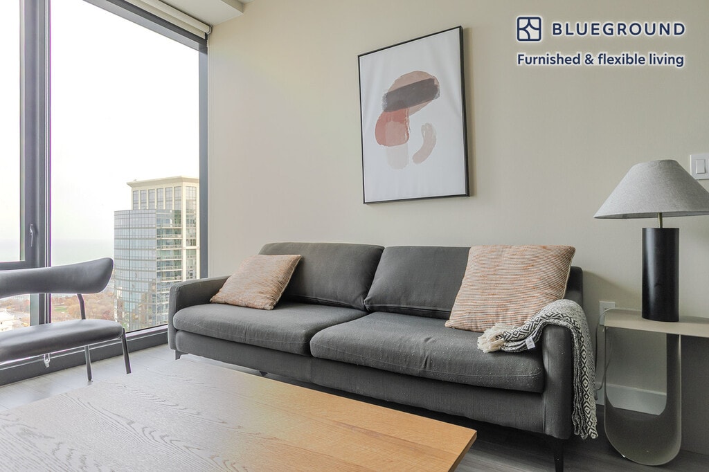 Feel at home wherever you choose to live with Blueground. You’ll love this beautiful Central Station furnished two bedroom apartment with its modern decor, fully equipped kitchen, and pretty living room. Ideally located, you’re close to all the best that Chicago has to offer! (ID #CHI1299) The advertised rate of $2,440/month is the lowest available price, based on a 2 month(s) and 21 day(s) stay with a move-in date of December 12, 2025. If you’re looking for a 1-year stay, the rate is $3,990/month. Rates vary depending on the duration of stay, season, and other parameters. For exact pricing and additional pricing components, please visit our website and enter your desired move-in and move-out dates. The rate is applicable when billed upfront; it can be higher if billed in multiple payments. Brokers are welcome to reach out. Were you looking for an unfurnished lease? Try Blueground instead and upgrade from unfurnished to furnished living: - Furnished at rates comparable to unfurnished - No setup or furniture costs - save thousands - Move-in ready - save time, just bring your suitcase Designed with you in mind Gorgeous furniture, fully equipped kitchen, smart TV, and a premium wireless speaker are just a few of the amenities you’ll find inside this two bedroom apartment. Ideally located in Chicago, you’ll find a lot to love outside as well. When you’re ready to relax, you’ll be happy to discover every Blueground bedroom comes with superior quality mattresses, luxury linens, and cozy towels. We handle everything so you can simply show up and start living. This apartment also offers in-apartment laundry. Sleeping arrangements King Bed, 70.8in/180cm King Bed, 70.8in/180cm Amenities Building amenities unique to this two bedroom apartment include an on-site: - Basketball Court - BBQ Area - Doorman - Dryer - Elevator - Game room - Swimming pool - Washing machine - Lounge - Pets allowed - Playroom - Sauna - Squash court Arrival and ongoing support The entire apartment is yours to enjoy! Throughout your stay, you’ll have access to our Client Experience team through the Blueground App. You can schedule additional cleanings, submit maintenance requests, and view our neighborhood recommendations with just a few taps. We’ll share all details upon confirmation of your stay. Other things to note Building amenities may have an extra cost. This Blueground apartment has flexible lease options, allowing you to book it for one month, a year, or more. Pets are welcome, though weight limits and breed restrictions apply and may incur fees. We take great pride in ensuring every photo displayed is shot in our own units with our actual furnishings. That said, we regularly refresh our decor and furniture arrangement, which may differ from what’s pictured. [SI]