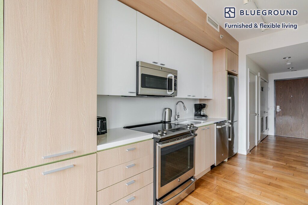 Feel at home wherever you choose to live with Blueground. You’ll love this pretty Navy Yard furnished one bedroom apartment with its modern decor, fully equipped kitchen, and comfortable living room. Ideally located, you’re close to all the best that Washington, D.C. has to offer! (ID #WDC1172) The advertised rate of $1,570/month is the lowest available price, based on a 1 month(s) and 11 day(s) stay with a move-in date of November 21, 2025. If you’re looking for a 1-year stay, the rate is $2,320/month. Rates vary depending on the duration of stay, season, and other parameters. For exact pricing and additional pricing components, please visit our website and enter your desired move-in and move-out dates. The rate is applicable when billed upfront; it can be higher if billed in multiple payments. Brokers are welcome to reach out. Were you looking for an unfurnished lease? Try Blueground instead and upgrade from unfurnished to furnished living: - Furnished at rates comparable to unfurnished - No setup or furniture costs - save thousands - Move-in ready - save time, just bring your suitcase Designed with you in mind As with any Blueground apartment, you’ll find a thoughtfully designed space complete with beautiful furniture and a fully equipped kitchen in this one bedroom property. And, thanks to our superior quality mattresses, luxury linens, and towels, you can relax knowing you’ll always feel comfortably at home. When you’re ready for some fun, you can take in the Washington, D.C. vibes or bring the entertainment to you with the premium wireless speaker or smart TV. This apartment also offers in-apartment laundry. Sleeping arrangements Queen Bed, 63in/160cm Amenities Building amenities unique to this one bedroom apartment include an on-site: - Doorman - Dryer - Elevator - Washing machine - Pets allowed Arrival and ongoing support The entire apartment is yours to enjoy! Throughout your stay, you’ll have access to our Client Experience team through the Blueground App. You can schedule additional cleanings, submit maintenance requests, and view our neighborhood recommendations with just a few taps. We’ll share all details upon confirmation of your stay. Ideally Located This furnished apartment is situated in the heart of Navy Yard, conveniently located a block away from the Navy Yard Metro and across the street from Nationals Park. This fast-growing neighborhood is now a main attraction in DC, due to its proximity to the Southwest Waterfront and abundance of activities for locals and visitors alike. Visit Canal Park and explore the seasonal markets and events, grab dinner and drinks at a local brewery or upscale Italian restaurant and top it off with Ice Cream Jubilee for delicious, creative flavors of hand-made ice cream. Also be sure to check out the rooftop of the brand-new building where our luxury Blueground apartment is located for sweeping views of the city and even a direct view into Nats Park! Other things to note Building amenities may have an extra cost. This Blueground apartment has flexible lease options, allowing you to book it for one month, a year, or more. Pets are welcome, though weight limits and breed restrictions apply and may incur fees. We take great pride in ensuring every photo displayed is shot in our own units with our actual furnishings. That said, we regularly refresh our decor and furniture arrangement, which may differ from what’s pictured. [GO]