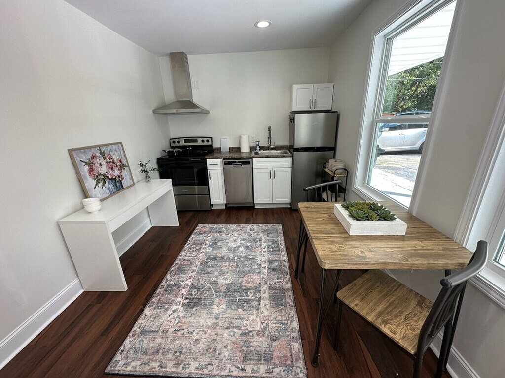 Come stay and unwind at this thoughtfully designed 1-bedroom apartment. The perfect mix of comfort, style, and convenience awaits you, whether you're visiting for a weekend escape or an extended stay. You'll find everything you need to relax and feel at home in this bright, clean, and modern space. The apartment features a super comfy bed and smart TVs, ensuring your entertainment and relaxation needs are met. The well-stocked coffee station with a dual Keurig and drip coffee maker adds a touch of convenience to your mornings. Located just minutes from downtown, local parks, and the best hidden food spots in town, this apartment offers easy access to everything you need. Enjoy a short walk to the great Mountain Goat cafe and explore the vibrant neighborhood. [SI]
