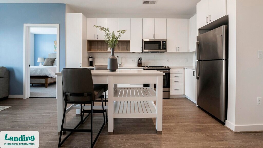 Landing offers flexible lease terms from weeks to months. Please always visit our website or contact us for the latest pricing & availability. Stay longer, save more: 6-Month Minimum base rent: starts at $3410/mo 12-Month Minimum base rent: starts at $3351/mo Landing offers flexible leases across a network of over 35,000 fully-furnished apartments throughout 375+ cities so you can rent on your terms, practically anywhere, and avoid the hassle of paying deposits or application fees. Visit to learn about all the benefits of a Landing membership, see our competitive up-to-date pricing, explore available apartments, take virtual tours, and make reservations online without jumping through traditional rental hoops. Landing's apartments at The Grayson are designed for comfortable, easy living, with the ability to stay as long as you like. Experience living with Landing Every apartment is outfitted with all the modern essentials including: custom-designed furnishings, a fully-equipped kitchen with deluxe stainless steel appliances, a gourmet coffee maker, premium linens, Smart TVs, and incredibly fast, reliable internet for working from home. When you live with Landing, you'll enjoy a hassle-free experience with the added benefit of 24/7 access to our dedicated member experience team. Some of the nitty-gritty: a background check and proof of income are required; we're completely smoke-free; bundled utility packages and pricing vary based on length of stay; pet-friendly options available; listed price reflects a 12-month minimum stay.