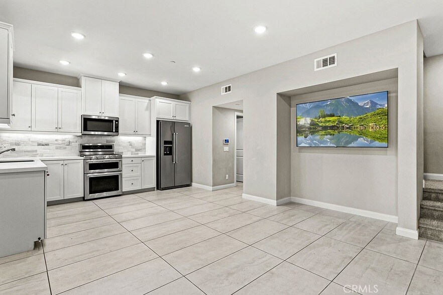 Explore this contemporary solar-powered 3-bedroom, 2.5 bathroom townhome in The Groves community in the city of Whittier. This former model home plan features an open floor plan and abundant natural lights. It also offers a spacious living room, dining area, upgraded kitchen with quartz countertops, and a full-height stylish backsplash. Upstairs you'll find three bedrooms, including a generous primary bedroom with a walk-in closet and ensuite bathroom. Enjoy the convenience of an attached 2-car garage with direct access. This home is also equipped with energy-efficient amenities such as a tankless water heater and complete Wi-Fi coverage smart home technology (you can control the lights, thermostat, door locks and more through the Apple Home app). Additionally, a Ring doorbell, water softener, washer, dryer, and refrigerator, TV, are included. The Groves is a gated, master-planned community offering resort-style amenities and a walkable lifestyle. Key features include The Commons Resident Club and a historic community center for events, multiple pools, a spa, a 24-hour fitness center, a Sky Deck, BBQ park, and scenic parks connected by a Heritage Trail. Its proximity to Uptown Whittier s shops, restaurants, and entertainment ensures high walkability, a dedicated food court nearby, creating a vibrant, family-friendly environment.