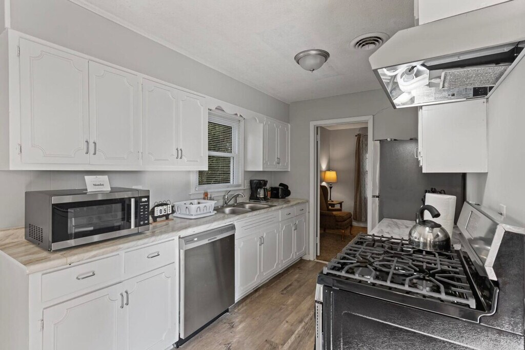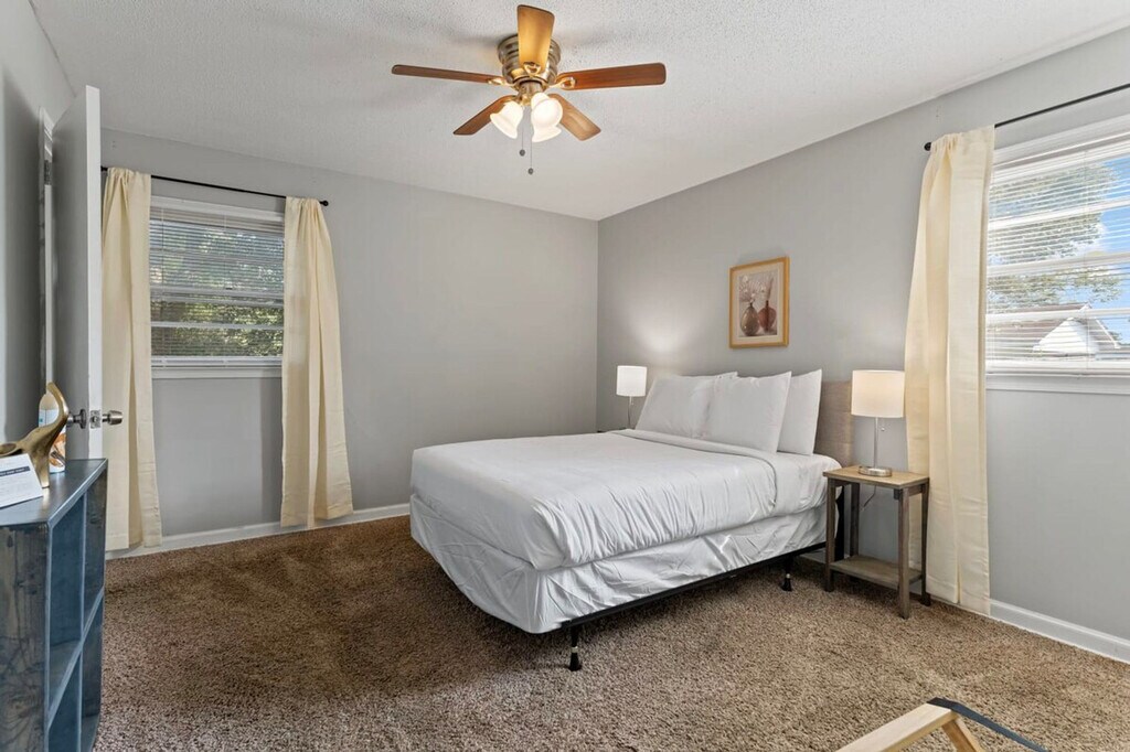 Feel at home in this 5-bedroom, 2-bathroom home, a perfect getaway from the hustle and bustle, with plenty of space for family gatherings. The living room has a comfy sofa bed and Smart TV. The spacious kitchen is fully equipped to cook and prepare your favorite dishes. All bedrooms are built to provide a comfortable night's sleep. Check out the lovely backyard with outdoor furniture to relax and enjoy. Guests will enter through the front door by using a digital key. From the entryway, the living room is straight ahead, the fully equipped eat-in kitchen and one bedroom are to the left, and the additional four bedrooms are down the hall to the right. A Pack-N-Play and vacuum are available upon request. This is a pet-friendly home with a fee. This home is conveniently located in a residential area with easy access to major highways and interstates, and is only 15 minutes from downtown. Uber, Lyft, and other taxis are available, but driving is encouraged! Quiet hours are between 10 PM and 7 AM. You must be at least 21 years of age to rent this property. If our cleaning crew reports any signs of smoking cigarettes, vapes, e-cigs, pipes, etc. (smell, ash, etc.) in or around the home, an automatic $500 damage charge will be incurred. The same charge applies if cigarette butts are found outside of the home. If marijuana is smoked in or around the home a $500 fee will be charged, and details about the reservation may be turned over to the appropriate authorities. Parties are prohibited at the home. Other events are permitted at the home only with prior approval. If you violate quiet hours and disturb the neighbors, we will cancel your reservation; you will be required to leave the property immediately and you will not be eligible for any refunds. We may monitor noise with exterior cameras and/or noise monitoring technology. You will be responsible for any damage to the home or its furnishings during your stay. Please bag all trash and place it in the bins provided. There is a $100 charge for third-party trash removal if an excessive amount of trash is left at the property. Pets are permitted at this home. You must notify us if you plan to bring a pet to the home and will be charged a non-refundable fee. You will be responsible for cleaning up all evidence of your pet at the property, including fur inside the home and waste from the yard. Pets must be crated when they are left unattended in the home. Pets are not allowed on furniture or beds, and all waste must be cleaned up from the yard. If there is evidence of pet hair on the furniture, excess hair in the home, stains, or waste found in the yard or home, you will be charged the cost to clean this. [SI]