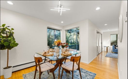 Property Id: 2090635 steps to DT and all of its benefits! Enjoy this refurbished (popcorn removed) 2bd/2.5ba TH (lives like SFR) with comfort, style, and lock-n-leave simplicity without having to do any yard work. Main floor: wood fireplace, bamboo floors, large porch for wine and coffee, and more storage. Kitchen to dining; laundry and pwdr on the same floor. Up: second bedroom with full bathroom for guests/office, main suite with WIC and ensuite. Top Bellevue schools in a private, tree-filled location. Walk or ride a bike to the waterfront, parks, restaurants, shops, and transportation.