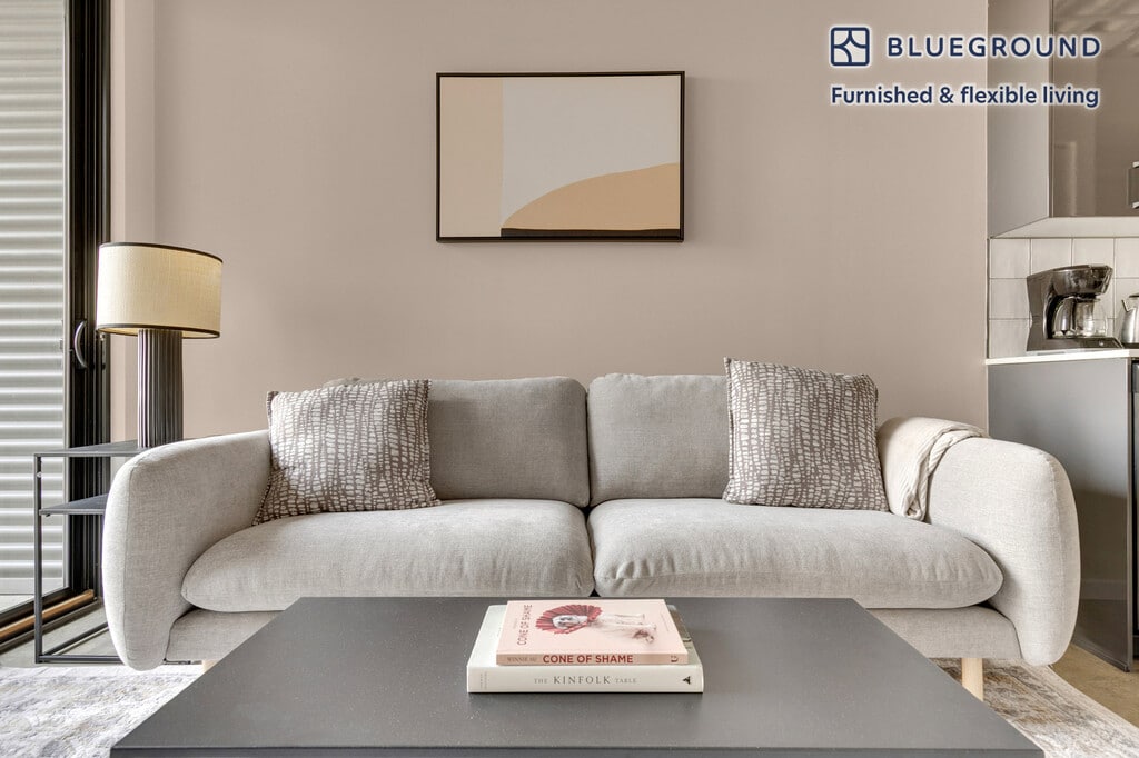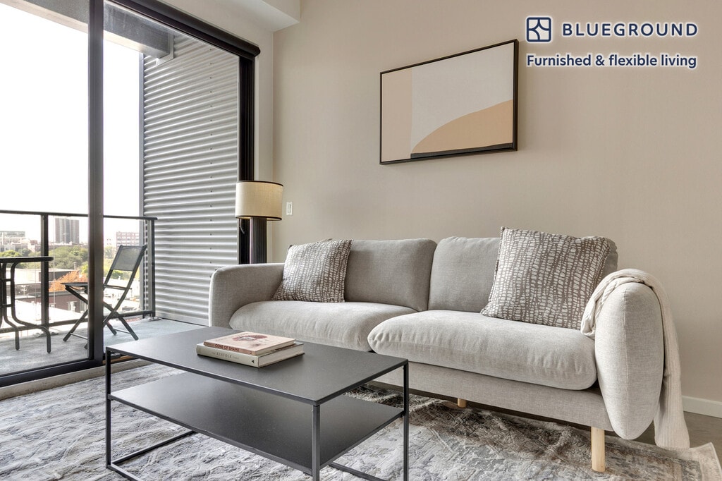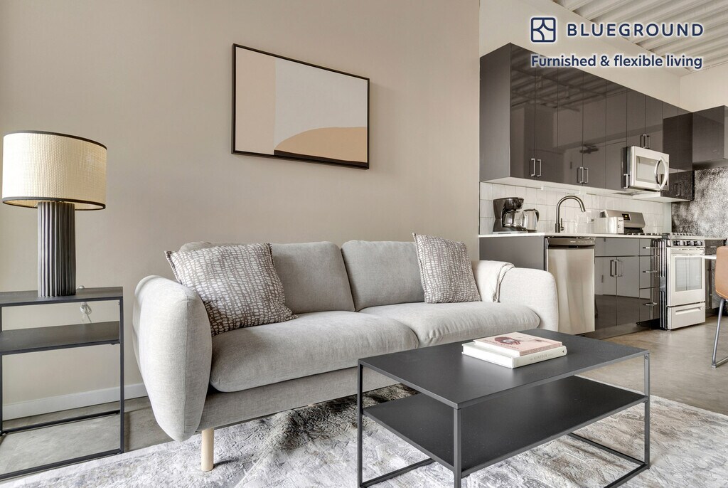 Discover the best of Chicago, with this one bedroom apartment in West Loop. It’ll be easy to simply show up and start living in this furnished apartment with its fully equipped kitchen, living room, and our dedicated, on-the-ground support. (ID #CHI1320) The advertised rate of $2,150/month is the lowest available price, based on a 1 month(s) and 8 day(s) stay with a move-in date of February 14, 2026. If you’re looking for a 1-year stay, the rate is $2,410/month. Rates vary depending on the duration of stay, season, and other parameters. For exact pricing and additional pricing components, please visit our website and enter your desired move-in and move-out dates. The rate is applicable when billed upfront; it can be higher if billed in multiple payments. Brokers are welcome to reach out. Were you looking for an unfurnished lease? Try Blueground instead and upgrade from unfurnished to furnished living: - Furnished at rates comparable to unfurnished - No setup or furniture costs - save thousands - Move-in ready - save time, just bring your suitcase Designed with you in mind Thoughtfully designed with bespoke finishes, modern furnishings, and a fully equipped kitchen, you’ll enjoy that “I’m home” feeling with this Blueground apartment. Whether you’re lounging in your lovely living room streaming the latest and greatest entertainment on the smart TV or premium wireless speaker, or getting some well-earned rest on the superior quality mattress with luxury linens, you’ll fall in love with everything this West Loop apartment has to offer. This apartment also offers in-apartment laundry. Sleeping arrangements Queen Bed, 63in/160cm Amenities Building amenities unique to this one bedroom apartment include an on-site: - BBQ Area - Dryer - Elevator - Washing machine - Pets allowed - Rooftop Arrival and ongoing support The entire apartment is yours to enjoy! Throughout your stay, you’ll have access to our Client Experience team through the Blueground App. You can schedule additional cleanings, submit maintenance requests, and view our neighborhood recommendations with just a few taps. We’ll share all details upon confirmation of your stay. Ideally Located Located in West Loop, this furnished rental invites you to explore the edges of downtown Chicago. From endless dining and bar options to art galleries and stylish shops, West Loop has emerged with so much to offer daily. During weekends, residents savor trips to the Chicago French Market and the vibrant strip of Randolph Street. The latter is known as “Restaurant Row” and is lined with some of the city’s best eateries. Fulton Market, one of the hippest and fastest-growing neighborhoods, is ideal for dinner and drinks. Union Station is only a 5 to 10 minute walk away. Other things to note Building amenities may have an extra cost. This Blueground apartment has flexible lease options, allowing you to book it for one month, a year, or more. Pets are welcome, though weight limits and breed restrictions apply and may incur fees. We take great pride in ensuring every photo displayed is shot in our own units with our actual furnishings. That said, we regularly refresh our decor and furniture arrangement, which may differ from what’s pictured.